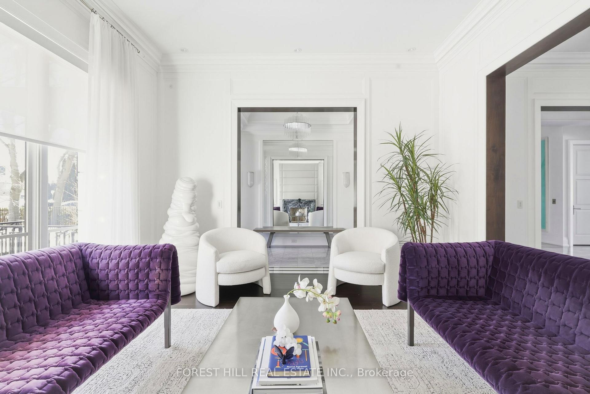 From the moment you step inside this custom-built, Forest Hill residence, you are struck by its timeless elegance, refined transitional design, exceptional attention to detail and the highest quality finishes throughout. Masterfully designed by acclaimed architect Richard Wengle and beautifully curated by Robin Nadel Interiors, this home offers a seamless blend of luxury and functionality. Highlights include custom millwork, marble finishes, and impressive 10' and 11' ceilings throughout the main level. The chef's kitchen is a true showpiece, featuring a 10' centre island with breakfast bar, separate pantry and servery, and a bright breakfast area with two walk-outs to private terraces. Family room with custom built-ins, main floor office, a formal living room with a wood-burning fireplace, and a grand dining room with servery access complete the thoughtfully designed main floor. The second level offers rarely offered five spacious bedrooms and 4 bathrooms. The primary suite is a private retreat, complete with his-and-hers walk-in closets and a stunning spa-inspired ensuite that rivals a five-star hotel. Vaulted ceilings, custom panelling, a linear gas fireplace, and built-ins add warmth and sophistication. The elevator provides convenient access to all levels. The lower level has been thoughtfully designed for both relaxation and entertaining. This level features a large at grade recreation room, a custom designed mudroom with direct access to the three-car garage and separate mechanical room, theatre/exercise room, a spa area with wet steam, a custom bar, and a guest suite with its own ensuite. The walk-out leads to a private beautifully landscaped, low-maintenance backyard with artificial grass, an irrigation system, and a covered patio ideal for entertaining. Situated on a premium block in Forest Hill, this exceptional home offers unparalled luxury in one of Toronto's most prestigious neighbourhoods.