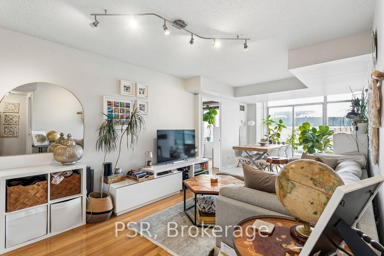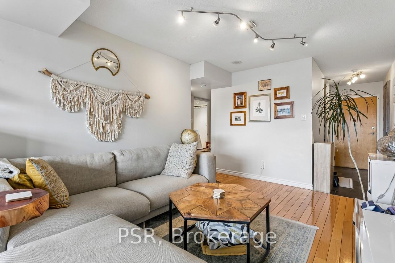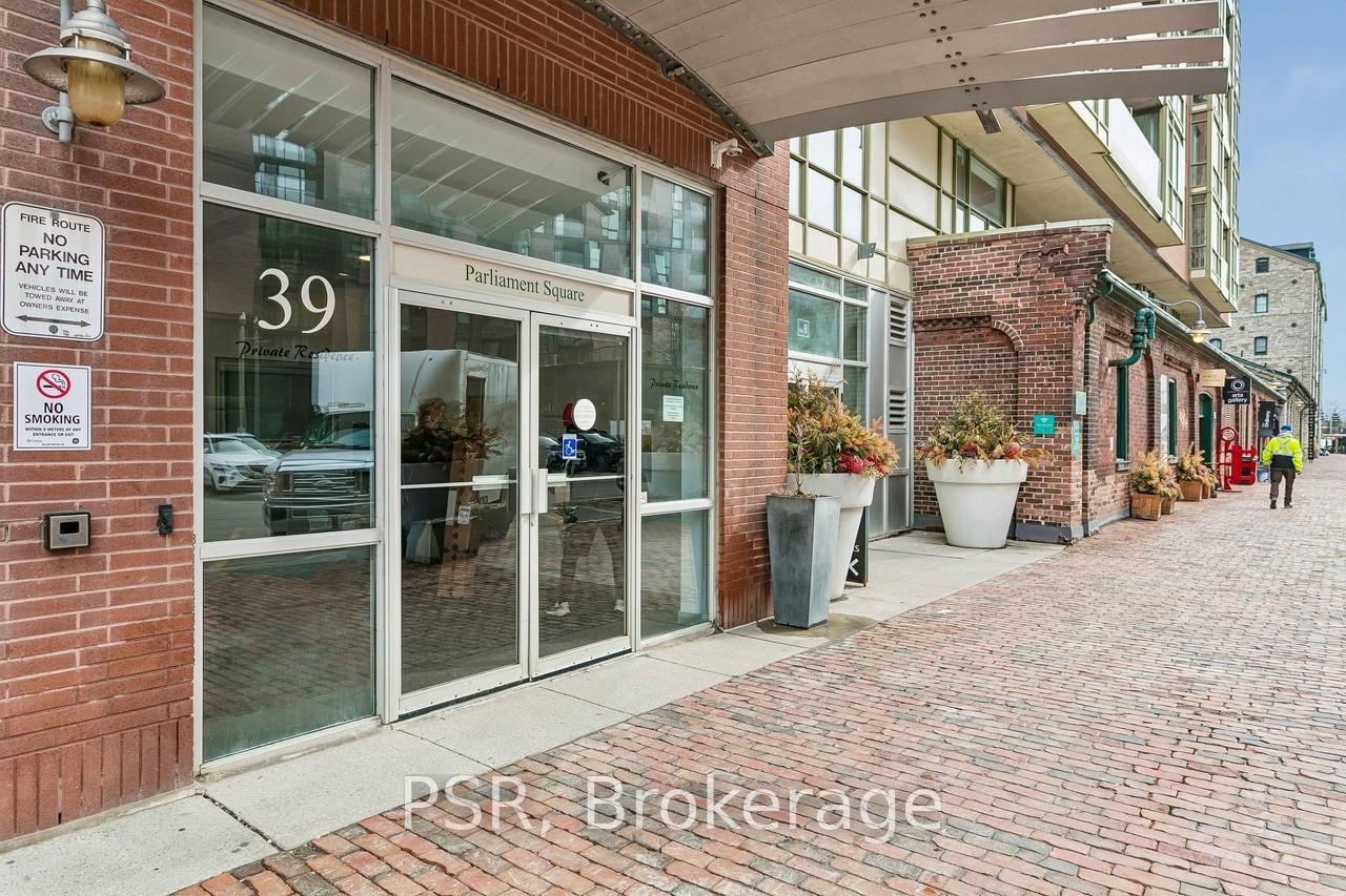 Parliament Square; A quiet gem at the west entrance of The Distillery Historic District. Bright and spacious one plus den that functions more like a true two bedroom (just under 800 interior sq. ft.). The large den is a separate room with windows; currently used as a home office (with a desk that converts to a murphy bed) *Landlord willing to leave this feature in place at Tenants request*. A cozy covered balcony gets drenched in afternoon sunlight & looks down the cobble stone lane into Toronto's most visually historic neighourhood. Primary bedroom walk-in closet. Parking and a storage locker are included in the monthly rent!! Exceptional value; a complete package. Local Landlord. The perfect condo for professional or couple. Available July 1.