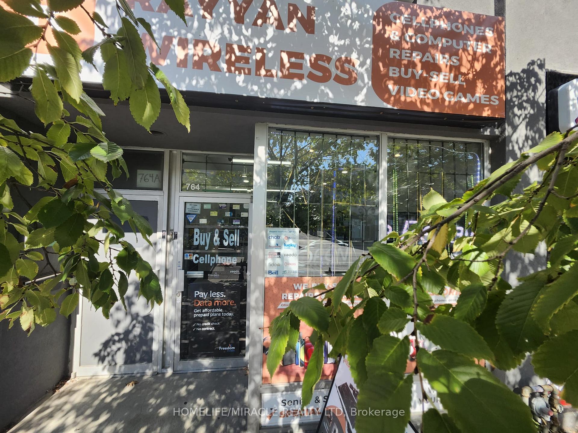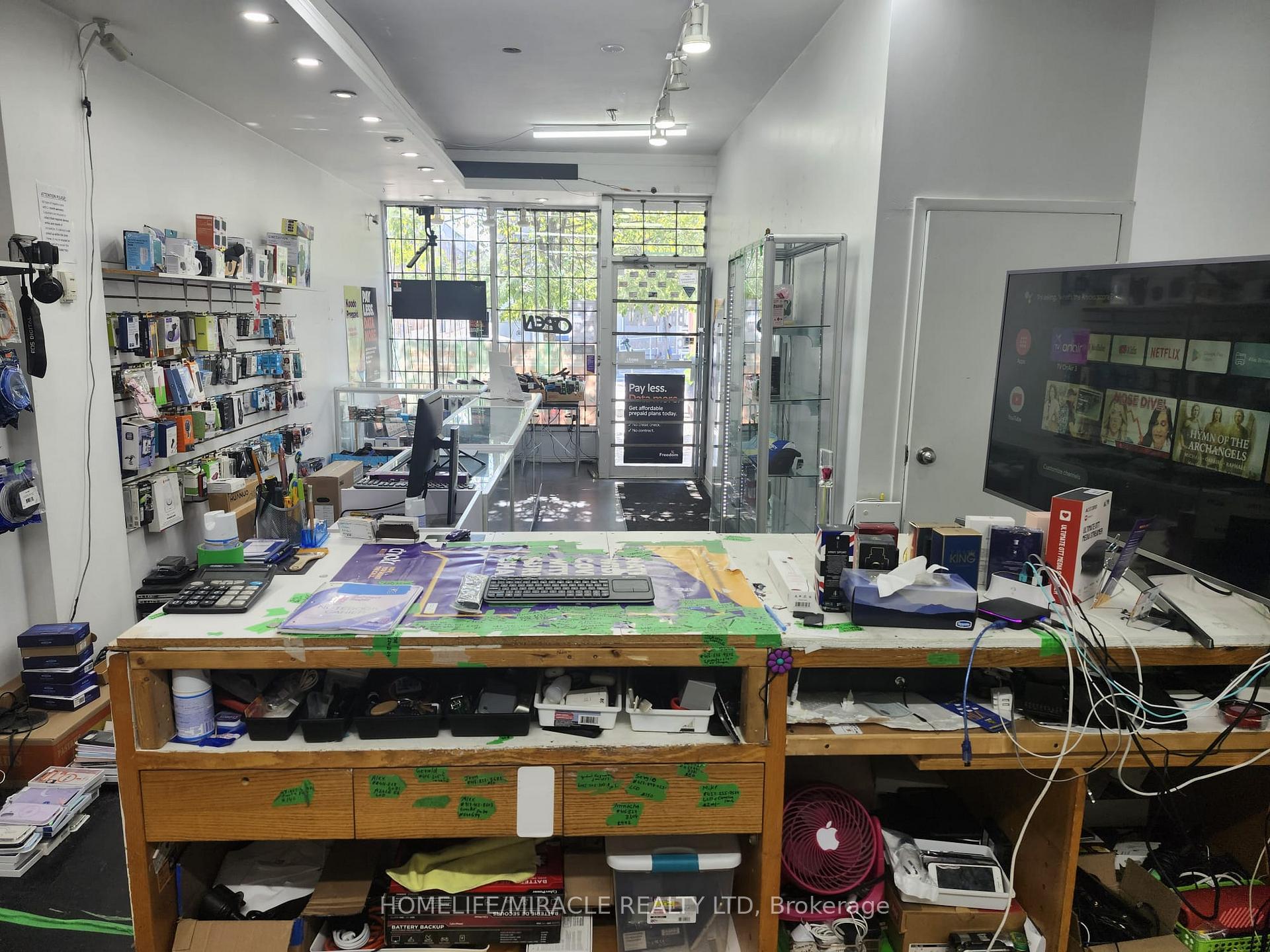 Turnkey wireless retail business for sale in a prime location at 764 Danforth Avenue, steps from Pape Subway. This established store offers authorized partnerships with Koodo and Freedom Mobile, and includes an Android TV box and subscription. Featuring excellent street-front exposure, competitive lease at $2,825/month (HST included, utilities extra), and a lease term with 1 year remaining plus 5-year renewal option. The property includes approximately 800 sq. ft. of basement space with washroom, on-site parking, and easy accessibility. Fully equipped and operational from day one with strong foot traffic, loyal customer base, and opportunity to expand into cellphone and computer accessories, repairs, and additional services. Located in a high-demand retail zone on Danforth & Pape (East York).