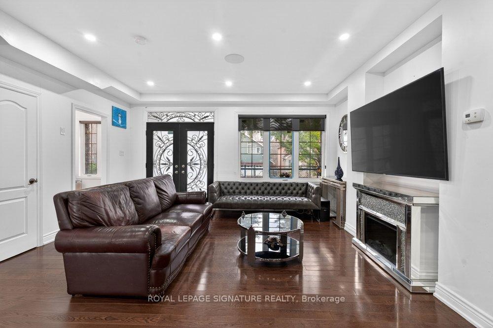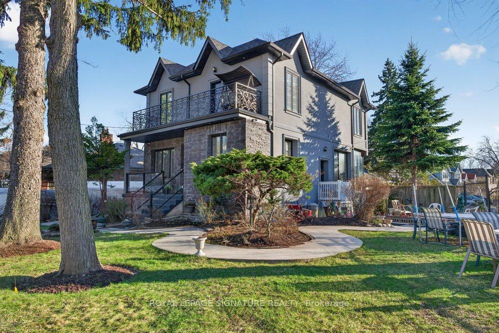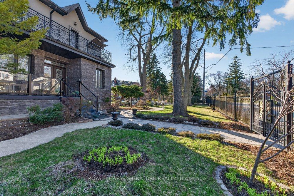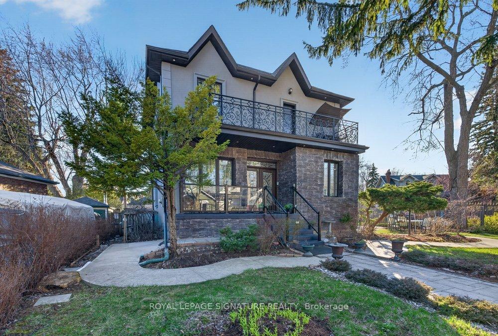 WOW On Cliffcrest! Situated on a rare, massive corner lot, this custom-built estate masterfully blends architectural scale with chic, modern refinement. The meticulously landscaped grounds frame the property from every angle, offering a lush sanctuary for garden enthusiasts and an expansive outdoor arena designed for high-end entertaining.The main level unfolds with an airy, open-concept living and dining floor plan, anchored by rich hardwood floors and oversized windows that invite a steady flow of natural light. The glamourous chef's kitchen serves as a stylistic focal point, featuring granite countertops, a custom backsplash, and premium stainless steel appliances, including a wall oven and gas cooktop. Enveloped by floor-to-ceiling glass, the kitchen leads directly to a fully enclosed sunroom-a tranquil space for morning coffee. A dedicated main-floor office provides a sophisticated environment for professional pursuits.Ascend to the second floor, where soaring ceilings and a central skylight create an airy, voluminous atmosphere. The primary suite is a true retreat, offering a private balcony, a walk-in closet, and a 4-piece ensuite. Three additional well-appointed bedrooms feature generous windows and ample closet space, providing elevated comfort for the entire family.The versatile basement extends the living space significantly, featuring a secondary kitchen, a large recreation area, and two additional bedrooms-perfect for multi-generational living, guest accommodations or income potential Outside, the fully fenced yard offers total privacy and a resort-style experience with an inground pool. Complete with a detached double garage and a private driveway, this property is a rare find that combines premium renovations and exceptional scale in a prime location.