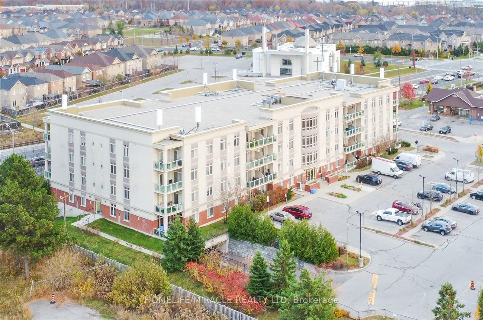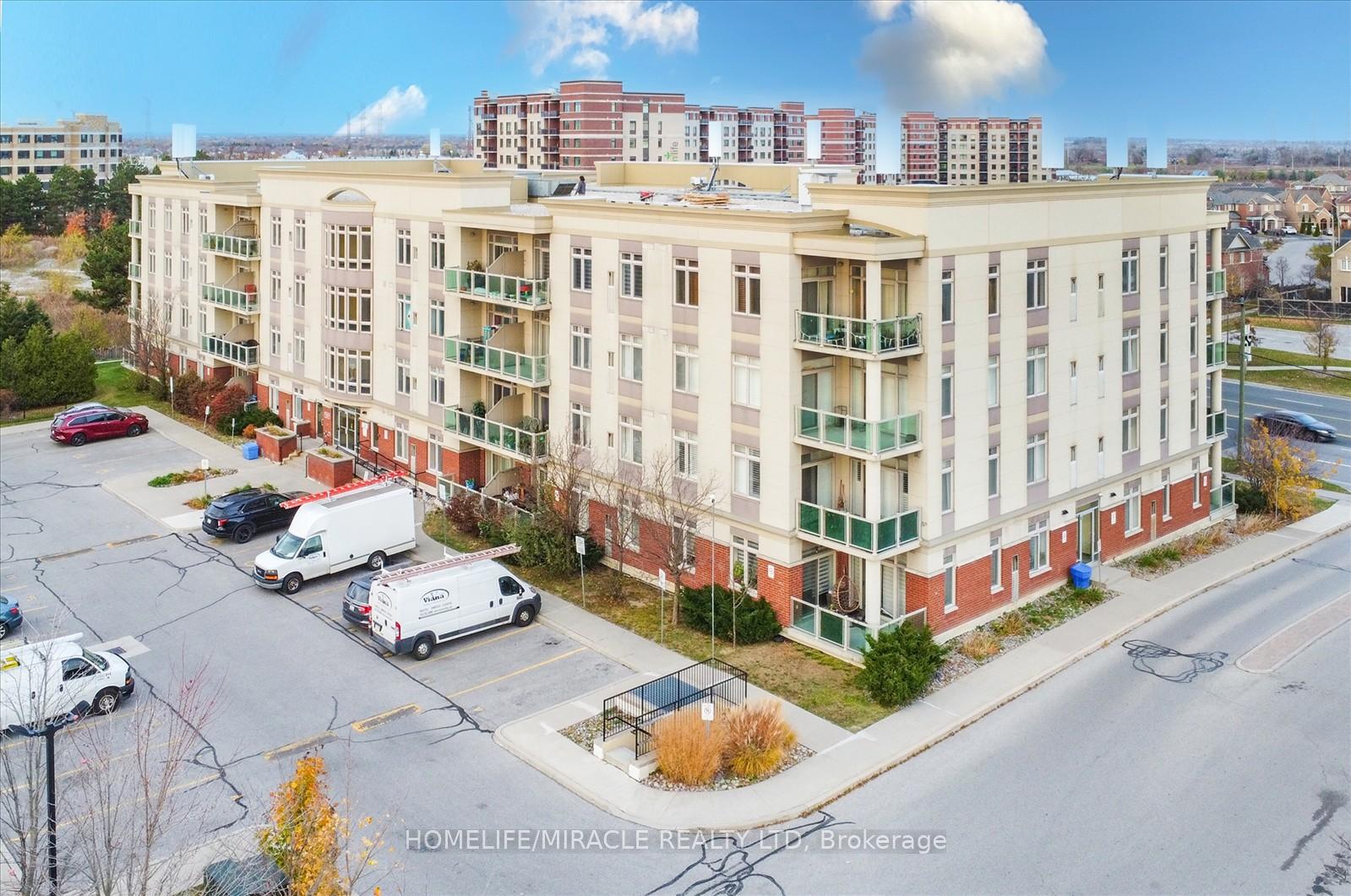 Discover spacious, modern living in this stunning 2-bedroom plus large den/office condo-easily adaptable as a third bedroom covering a generous 1,488 sq. ft. (1,348 sq. ft. interior plus a 140 sq. ft. private elevated balcony). Designed for comfort and convenience, this main-floor unit offers easy access-no elevators needed-making life simpler for families and professionals alike. Step inside to an open, sunlit layout featuring expansive windows, luxurious new vinyl flooring, and soaring 9 ft ceilings. The sleek, upgraded kitchen boasts quartz countertops, abundant storage cabinets, and a dedicated water-filter faucet, catering to your culinary and lifestyle needs. The living room is enhanced with bright, dimmable flat-panel LED pot lights and additional Smart RGB LED lighting, perfect for setting the mood or entertaining guests. Smart LED fixtures continue into the primary bedroom and hallway, with a recessed floodlight in the den. Relax in style in the ensuite bathroom's fully functional Jacuzzi tub, complete with adjustable water pressure for ultimate comfort. Modern appliances, including a brand-new dishwasher, washer, and dryer (2024), bring added convenience. Enjoy two dedicated parking spaces and a locker for extra storage. The private, oversized balcony extends your living space and is ideal for unwinding or hosting friends. Located minutes from Hwy 407, Costco, Walmart, Canadian Tire, Home Depot, shopping centres, public transit, top-rated schools, parks, restaurants, and community centres. Everyday essentials-Tim Hortons and a gas station-are just 2-minute walk away.