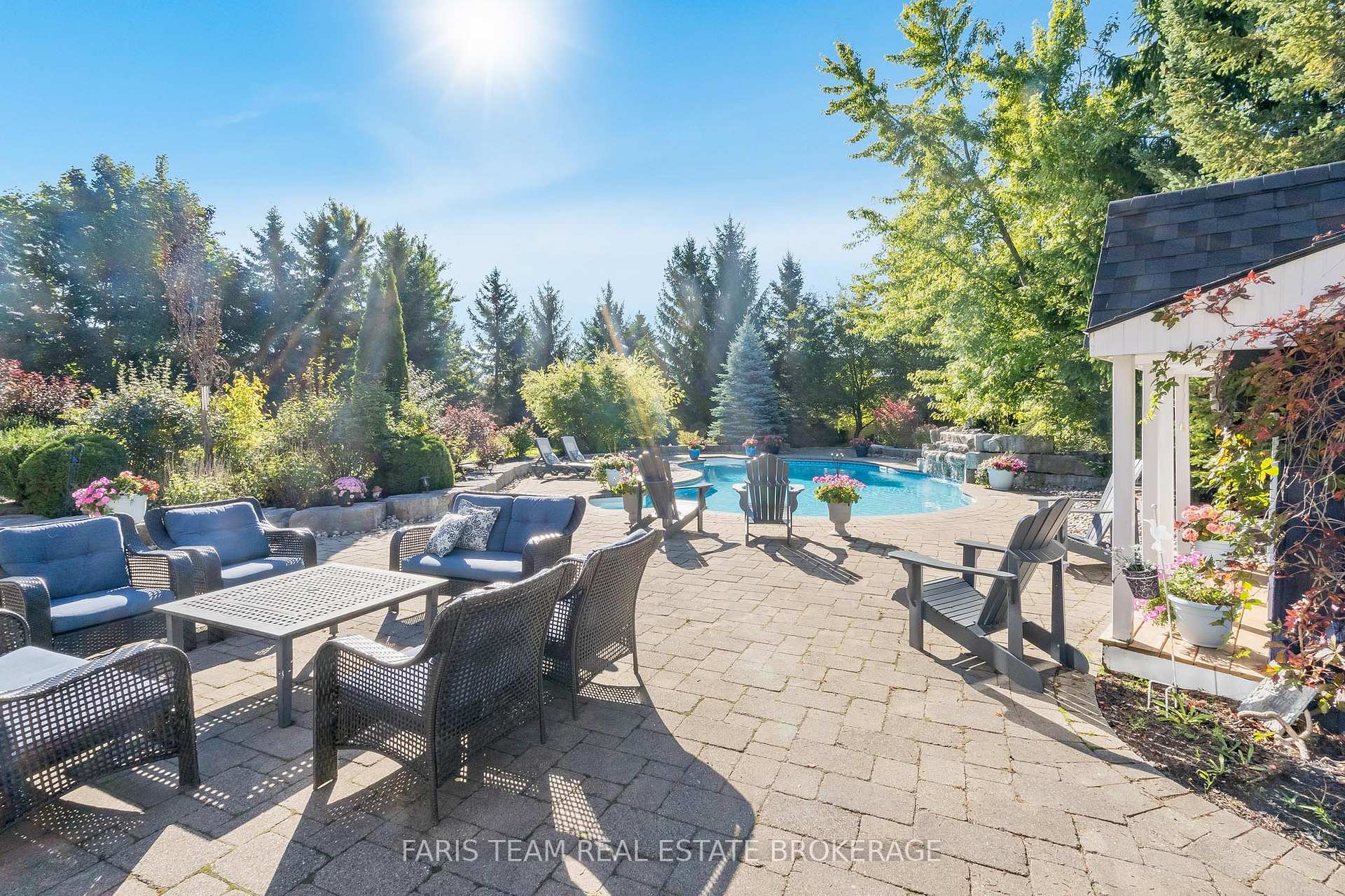 Top 5 Reasons You Will Love This Home: 1) This expansive family home is designed for both space and function, featuring generous living areas, an oversized triple-car garage with soaring ceilings, and a driveway that accommodates up to 12 vehicles, ideal for hosting family and friends 2) Step into your own private resort with a heated inground pool, hot tub, sprawling stone patio, and multiple outdoor living spaces framed by mature trees, perennial gardens, a fire pit, and a custom playhouse with power and a doorbell 3) A utility garden shed adds extra storage at the back of the property, while smart-switch lighting throughout the home ensures both convenience and efficiency 4) Inside, modern finishes meet everyday comfort with 9' ceilings, hardwood and laminate flooring, quartz countertops, inviting fireplaces, and a bright open-concept layout designed for both cozy evenings and lively gatherings 5) Located in the charming village of Thornton, you'll enjoy peaceful small-town living with quick access to highways, south Barrie amenities, schools, and conveniences just minutes away. 3,302 above grade sq.ft. plus a finished basement.