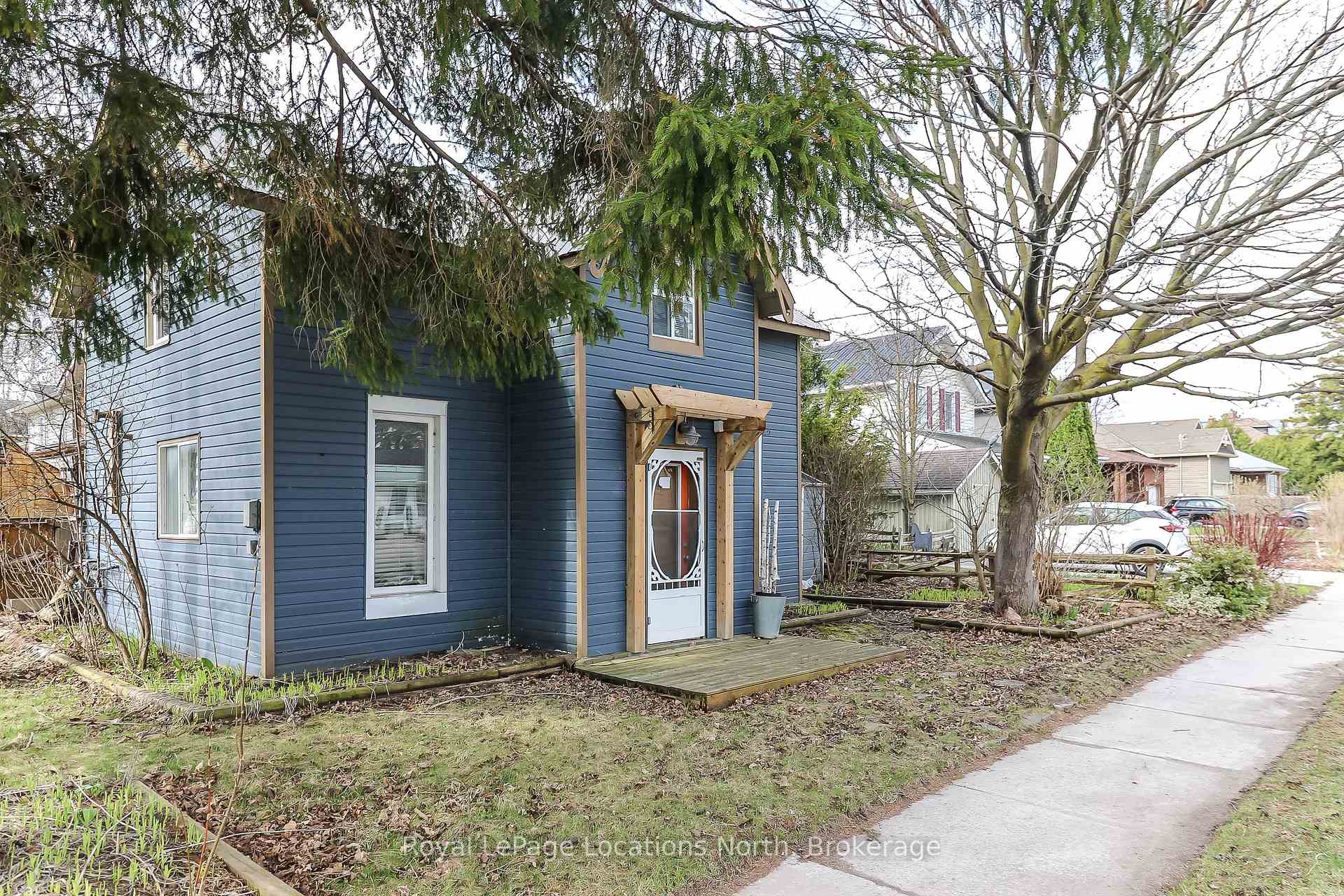 Short walk to Downtown and Sunset Point ! Two story - 2 Bedroom + Den home is located on a corner lot with mature trees providing shade and privacy. Some upgrades include laminate floors in Living room and Dinette area and some new windows in 2018. 100 amp breaker hydro panel in 2016. Main floor Laundry located in the upgraded 4 pc bath. All appliances, hot tub and 2 sheds included. Two decks on each side of then house, one partly covered and one off kitchen leading to a private hot tub courtyard area with fencing and mature gardens for added privacy. Great location with an easy walk to downtown and take the bike/walking trails to Georgian Bay and Sunset Point for your summer enjoyment.