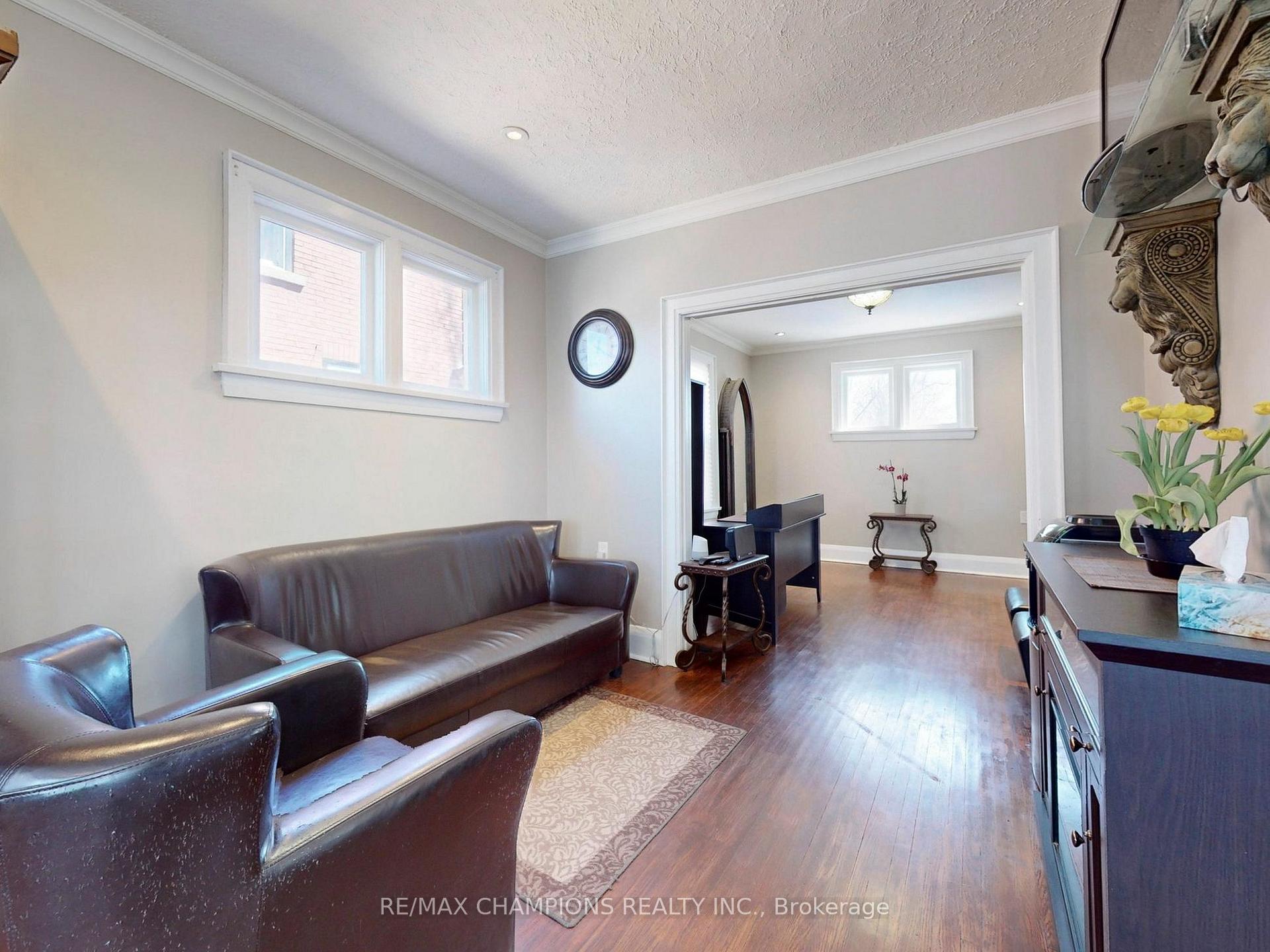 Location, Location, Location!! Great Potential For Rezoning into commercial. Lots of parking spots in the rear of the property. Main floor Kitchen has been converted to a work space area, can be converted back to Kitchen as all electrical & pluming are there. Entry from the back enclosed porch to kitchen area. Combination Liv/Din Room with strip hardwood flooring. Pot lights & Crown Maudling. Main floor 2 Pc power room 2nd floor Kitchen can be converted back to 3rd bedroom. 4Pc Bathroom & 2 Bedrooms. Unfinished Basement with above grade windows. Upgraded electrical panel. Newer windows throughout the home except 2 windows on the main level. Newer Furnace. Square Footage is Approximate.