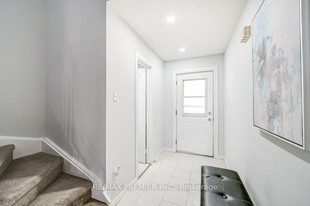 Welcome to this lovely, versatile and thoughtfully upgraded 1,300 sq. ft. Meadowvale townhome is tucked into a quiet, family-friendly community, backing onto green space and a playground - offering both comfort and convenience in a high-demand location.Step into a functional layout starting with a striking 2-storey front entry, leading to spacious living and dining areas with a walk-out to a private, fully fenced patio - ideal for relaxing, gardening, or watching the kids play.The kitchen has been refreshed with a sleek new white backsplash, newer Frigidaire stainless steel appliances (2024), and warm wood cabinetry. Renovations and upgrades throughout include pot lights and luxury vinyl plank flooring (2024) on both the main and second levels, plus updated bathrooms (2025) - blending style, durability, and everyday function. The flooring offers the textured look of walnut but with water-resistant, pet- and family-friendly durability.Upstairs, you'll find three well-apportioned bedrooms, including a spacious primary and two versatile secondary rooms - perfect for children, guests, or a home office. The finished basement recreation room adds even more flexible space for play, work, hobbies, or entertainment. Outstanding Location!Just a short walk to Lake Aquitaine, Meadowvale Town Centre, top-rated schools, trails, parks, Meadowvale Community Centre, and transit. Easy access to major highways and Meadowvale GO make commuting a breeze.This is an excellent opportunity for first-time buyers, families (elementary school across the park - no roads to cross!), or downsizers seeking a well-sized, low-maintenance home in a thriving neighbourhood.Please review the full marketing package and attached Features and Upgrades for full list of goodies!