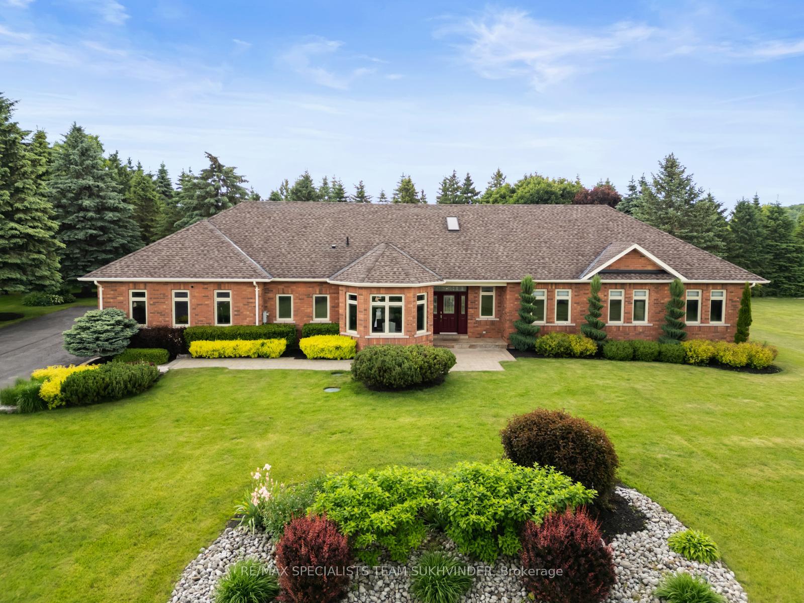 Welcome to 7 Golfdale Court in Prestigious Caledon Woods Estate; a truly remarkable bungalow offering 3+2 bedrooms, tucked away on a quiet cul-de-sac and set on nearly 1.5 acres of beautifully landscaped grounds, and **Built in 2007, making it one of the newer homes in the area**. This exceptional home offers a seamless blend of comfort and sophistication. Step into a thoughtfully designed interior featuring sunken formal living and dining spaces, ideal for hosting guests, along with a warm and inviting family room with a cozy ambiance. The gourmet kitchen is a culinary dream, complete with a breakfast area and walkout to a spacious deck overlooking your private backyard oasis. The main floor is highlighted by a bright and spacious primary retreat with a walk-in closet and a 4-piece ensuite, along with two well-appointed bedrooms, a full main bathroom and a versatile office that can easily be converted into a fourth bedroom. A convenient laundry/mudroom provides direct access to the heated 3-car garage. Additional highlights include a sprinkler irrigation system for easy lawn maintenance and beautifully manicured grounds. Downstairs, the finished lower level offers an open concept design, perfect for entertaining or multi-generational living, featuring a large recreation area, two additional bedrooms, a 3-piece bath, and a dedicated storage room. Surrounded by natural beauty and tucked in an exclusive neighborhood, this property offers peace, privacy, and refined living just minutes from all essential amenities.