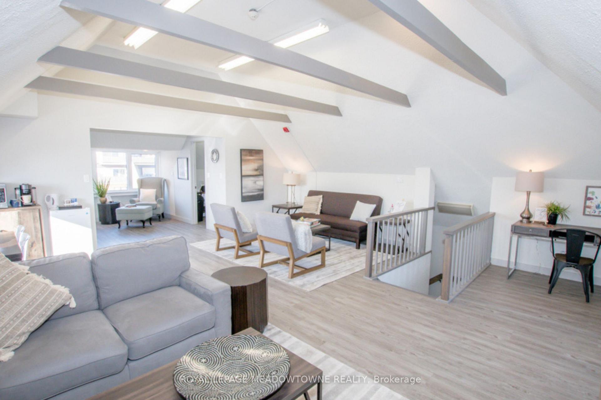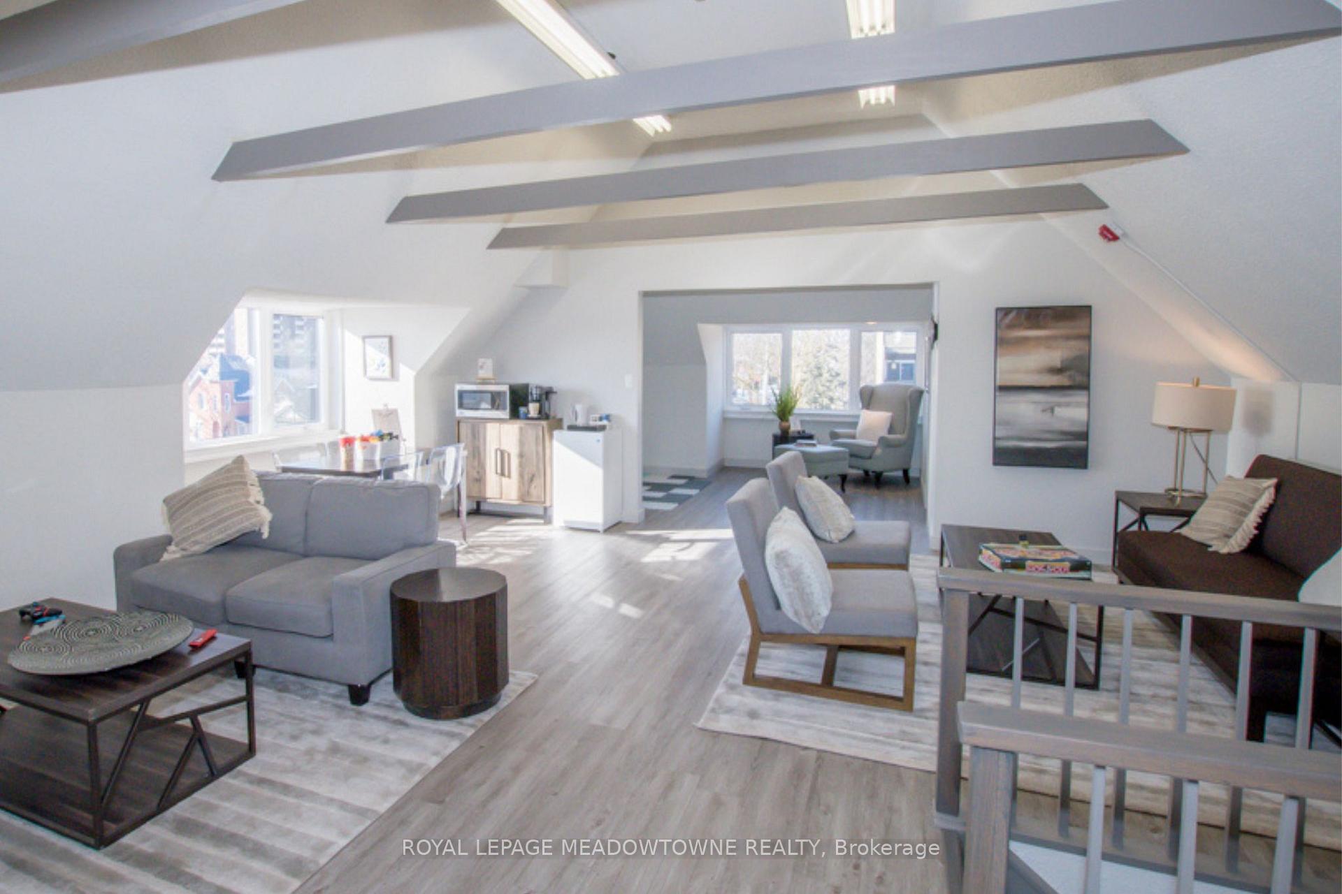 This bright, peaceful upper level office on a corner lot in downtown Milton offers an open-concept layout suitable for private sessions, counseling, or creative work. Highly visible on Main Street, the third-floor loft space is ideal for a business seeking a calm, client-friendly setting. Some furniture can be included. The suite also contains high 10'10"ceilings, its own private bathroom and laminate flooring. Located at 350 Main Street East, this freestanding downtown building offers excellent exposure, ample client parking in front and back, and walkable access to cafés, GO STATION and services. Accessed by a private side entrance shared with the 2nd floor professional.