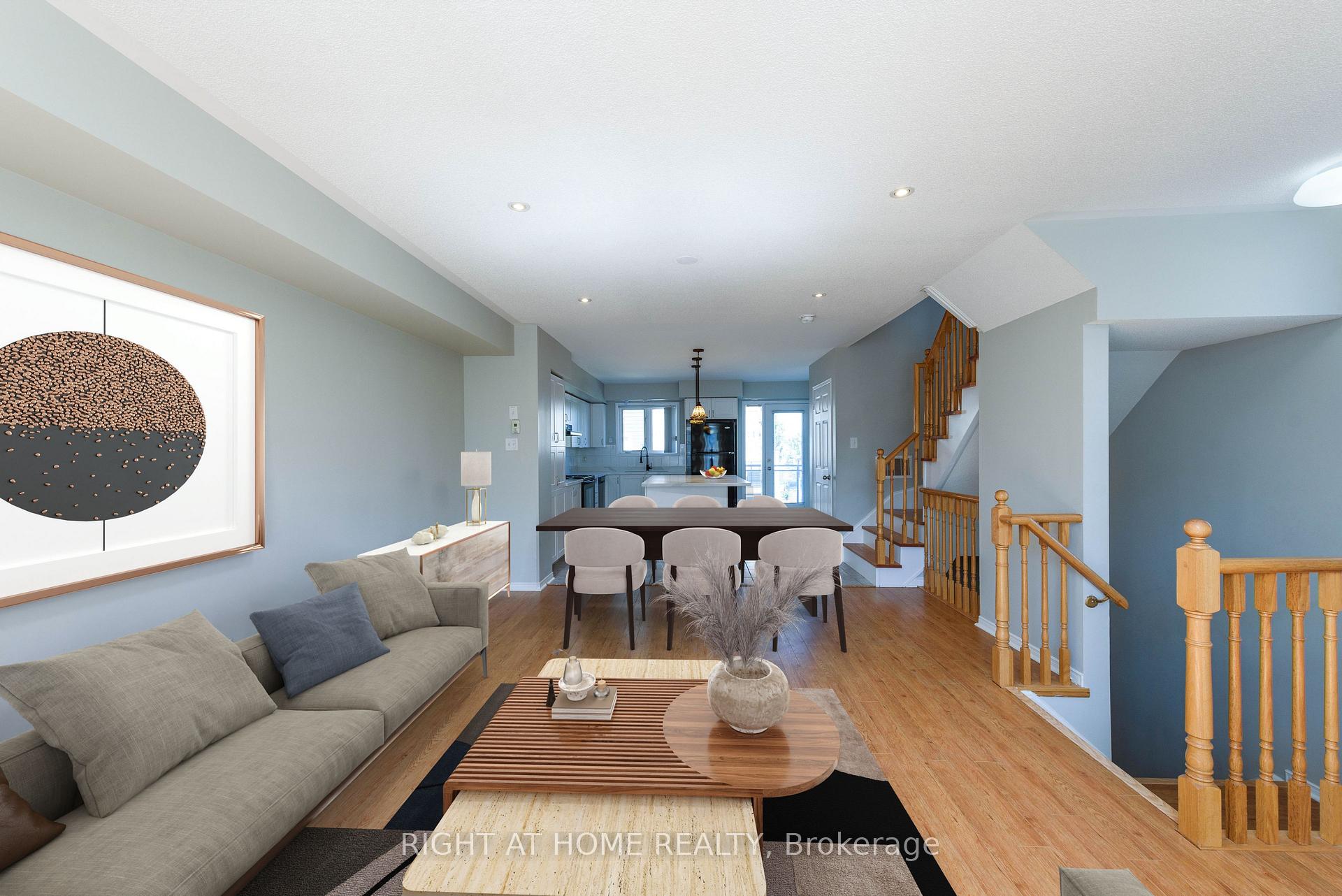Beautifully Upgraded Executive End Unit Townhouse In A Quiet Court, Open Concept, Spacious Eat-In Kitchen With Hanging Lights, Combined Living/Dining With Walkout To A Large Deck. Two Bedrooms Offer Private Ensuites, And Wall To Wall Closets. 2nd Floor Laundry, And Direct Access To The Garage. Laminate Flooring Throughout. Pot Lights Living & Dining Rooms. No carpet anywhere incl the stairs ! 2nd surface parking available for additional $50 pm