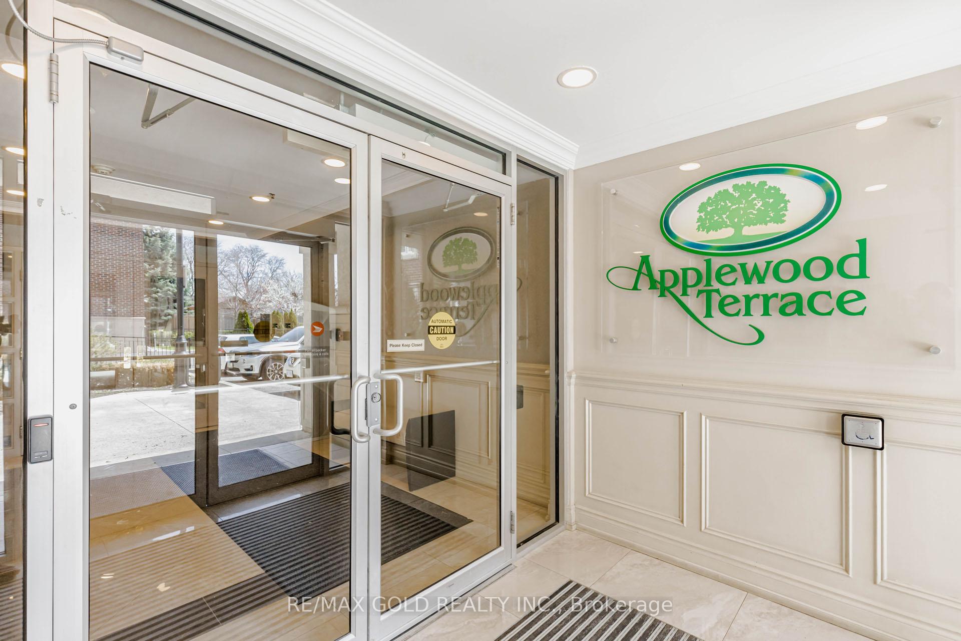 Bright 2nd floor suite in the boutique-style Applewood Terrace, backing onto Silverthorn Park. Listed as 1+den, lives like a true 2-bedroom, 2-bath. Den size is 11.19 ft X 11.09.Strong value.Open-concept living and dining area with spacious open balcony, built-in fireplace with accent wall, and crown moulding. Modern kitchen with stainless steel Fridge/Stove and granite breakfast bar. Spacious primary bedroom with walk-in closet and 4-piece ensuite. Large enclosed den with French doors and pot lights, ideal as a second bedroom or office.Separate 2 pcs powder room bath.Privacy in a quiet, well-kept building. Central location close to shopping, schools, and parks. Easy access to Highway 403, Highway 410, and QEW. Transit at your doorstep.