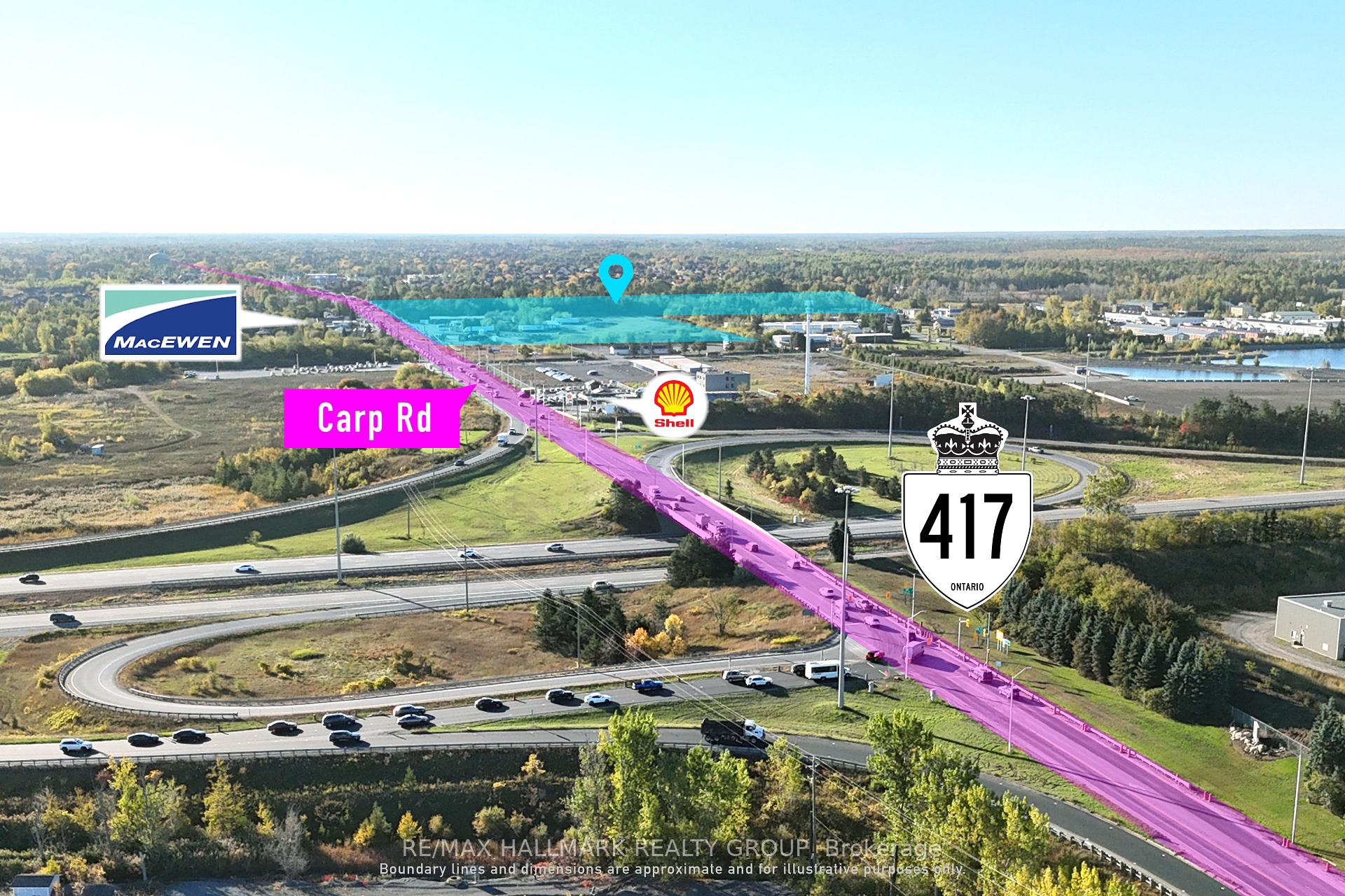 From highway 417 take exit 144 for Ottawa 5 toward Ch Carp Rd/Stittsville/Carp heading south. Property on right.