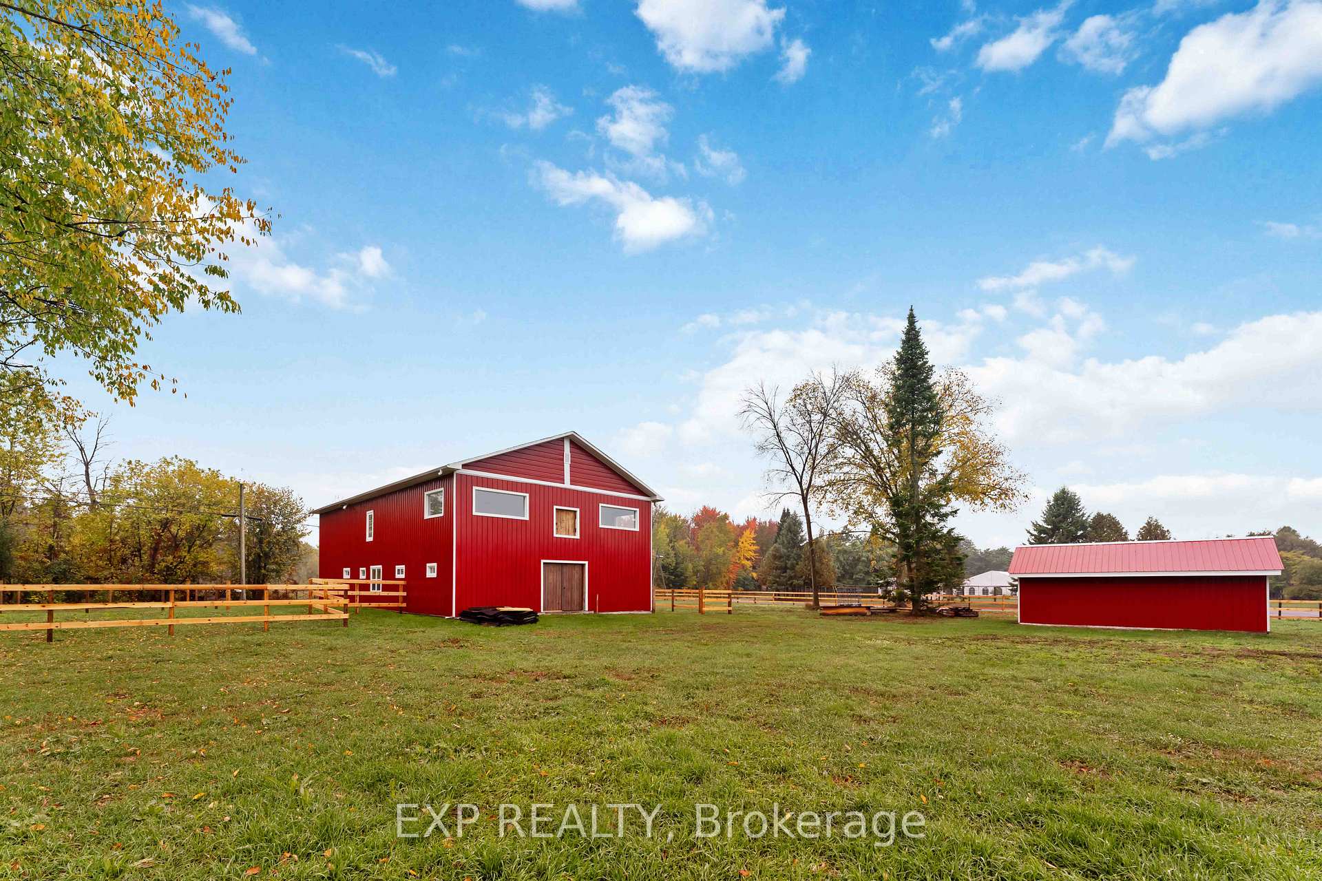 An exceptional opportunity for equestrian professionals to elevate their business. This fully equipped 65 x 40 premium stable is designed for trainers, horse owners, and equine therapy operators seeking a turnkey facility that blends functionality with comfort. The main stable features seven spacious stalls each with water, a window, fan, and power outlet along with a wash bay equipped with a pressure washer and swing arm, tack and feed rooms, a bathroom, and security cameras for peace of mind. The second floor offers a large hay storage area, two modern washrooms with custom showers, an office for daily management, and a spacious boardroom complete with a lounge area, large table, and wet bar An exceptional opportunity for equestrian professionals to elevate their business. This fully equipped 65 x 40 premium stable is designed for trainers, horse owners, and equine therapy operators seeking a turnkey facility that blends functionality with comfort. The main stable features seven spacious stalls each with water, a window, fan, and power outlet along with a wash bay equipped with a pressure washer and swing arm, tack and feed rooms, a bathroom, and security cameras for peace of mind. The second floor offers a large hay storage area, two modern washrooms with custom showers, an office for daily management, and a spacious boardroom complete with a lounge area, large table, and wet bar ideal for meetings or events. Located in Greely, this property is perfect for someone ready to take their equestrian operation to the next level. Ideal for meetings or events. Located in Greely, this property is perfect for someone ready to take their equestrian operation to the next level.