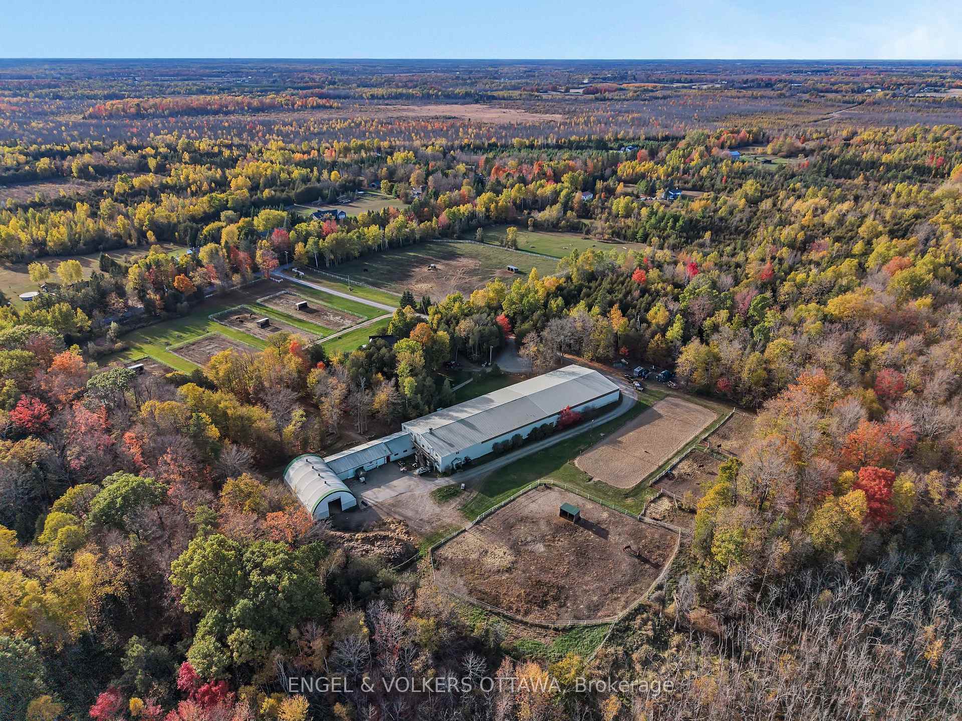 Welcome to Oxford Ridge Stable - Your Equestrian Dream Awaits! Nestled on 16.62 picturesque acres surrounded by mature trees, Oxford Ridge Stable offers the perfect blend of tranquility, functionality, and lifestyle. Ideally located just 10 minutes from Kemptville and all its amenities, this exceptional property is designed to delight horse enthusiasts and entrepreneurs alike. The Lindel Chalet-style home features 4+1 bedrooms, 4 bathrooms, and the comfort of geothermal heating. Enjoy stunning sunsets from the main-floor balcony or unwind on the lower maintenance-free deck complete with a hot tub, in-ground pool, and gazebo-a perfect setting for relaxing or entertaining. Equestrians will be impressed by one of the largest indoor arenas in the Ottawa region, measuring 249 ft x 83 ft, complete with two viewing areas, a lounge, and two income-generating apartments above the stables. The attached stable includes 16 indoor stalls, 6 quarantine stalls, a tack area, feed room, wash stall, and grooming stalls, offering everything needed for professional operations. Additional features include a 3,000 sq. ft. quonset building, an outdoor riding ring with a rubber base, 13 paddocks with solar fencers, and scenic trail riding right on the property. Whether you're seeking a private equestrian retreat or looking to operate a thriving horse facility, Oxford Ridge Stable delivers a lifestyle unlike any other - where luxury meets country living.