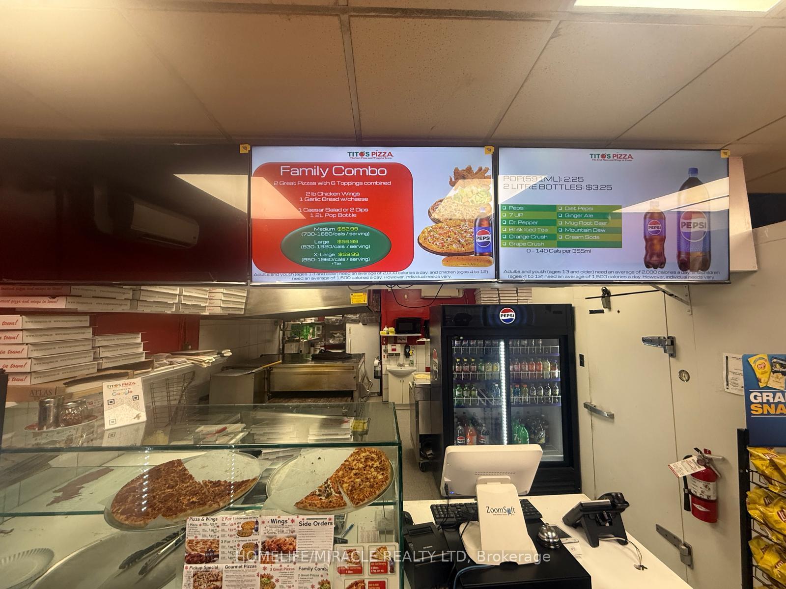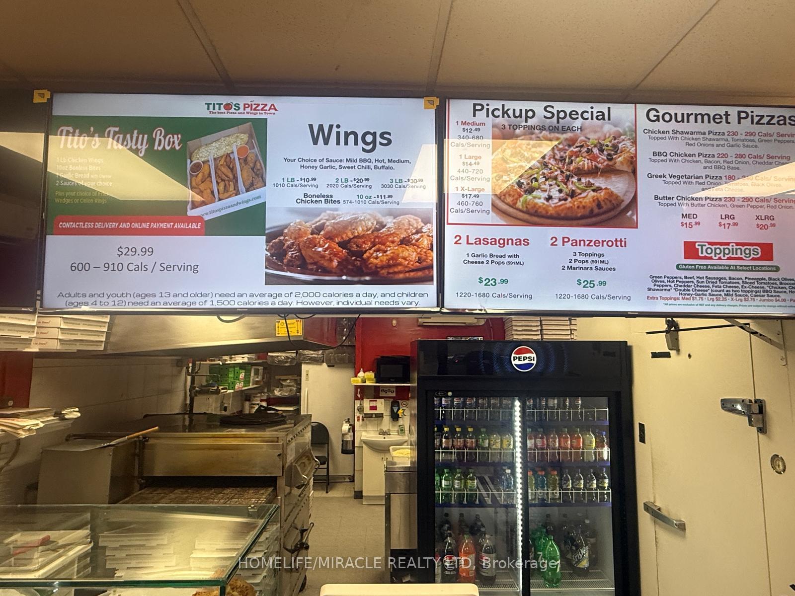 TITO'S PIZZA Business in Brantford is For Sale. Located at the busy intersection of Brantwood Park Rd/Dunsdon St. Surrounded by Fully Residential Neighborhood. Close to Schools, Highway, Offices, Banks, Major Big Box Store and Much More. Business with so much opportunity to grow the business even more. Monthly Sales: Approx.$32,000-$34,000 Rent: $1665/m including TMI & HST, Lease Term: Existing 9 + 5 Years Option to renew , Royalty: $900/m.