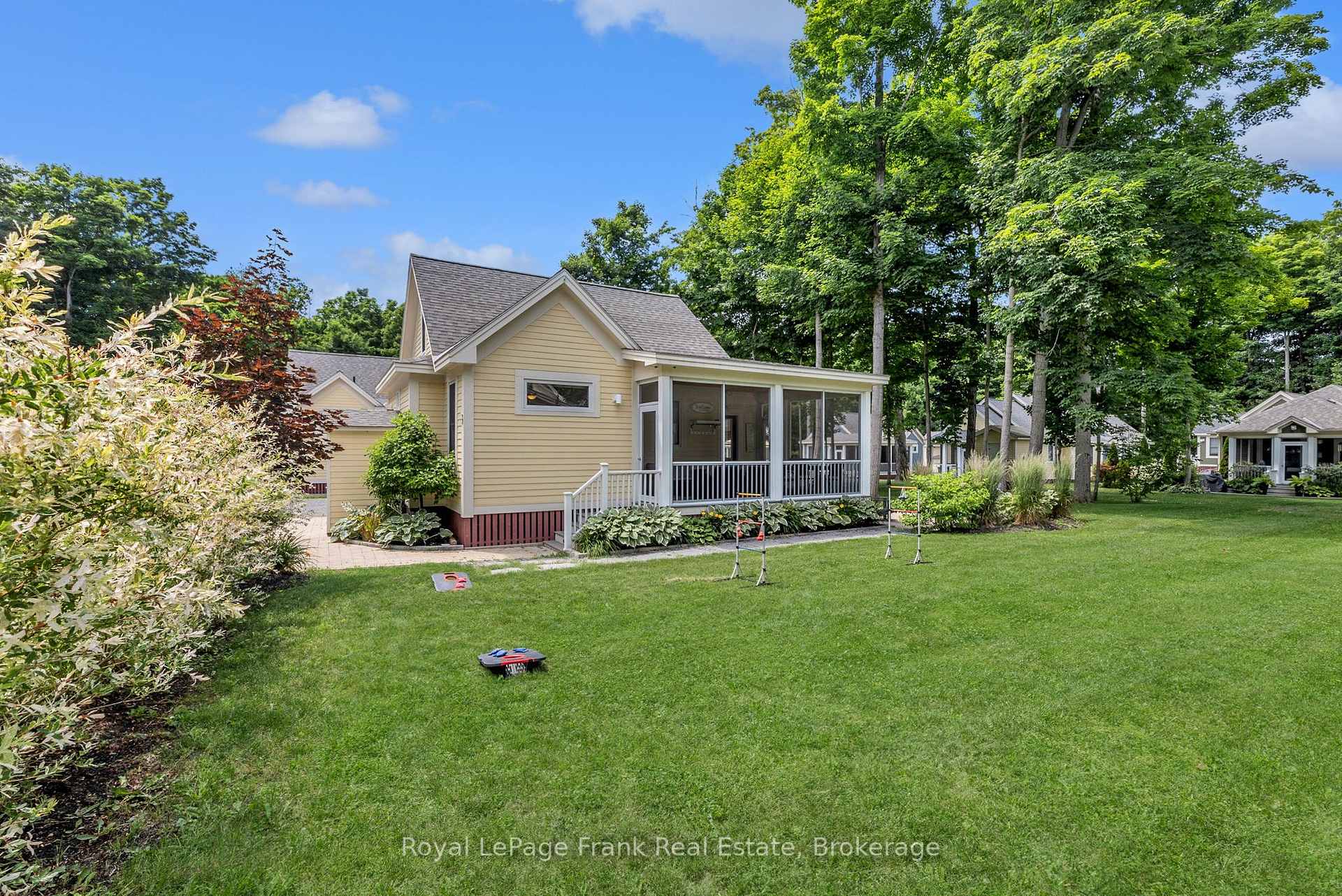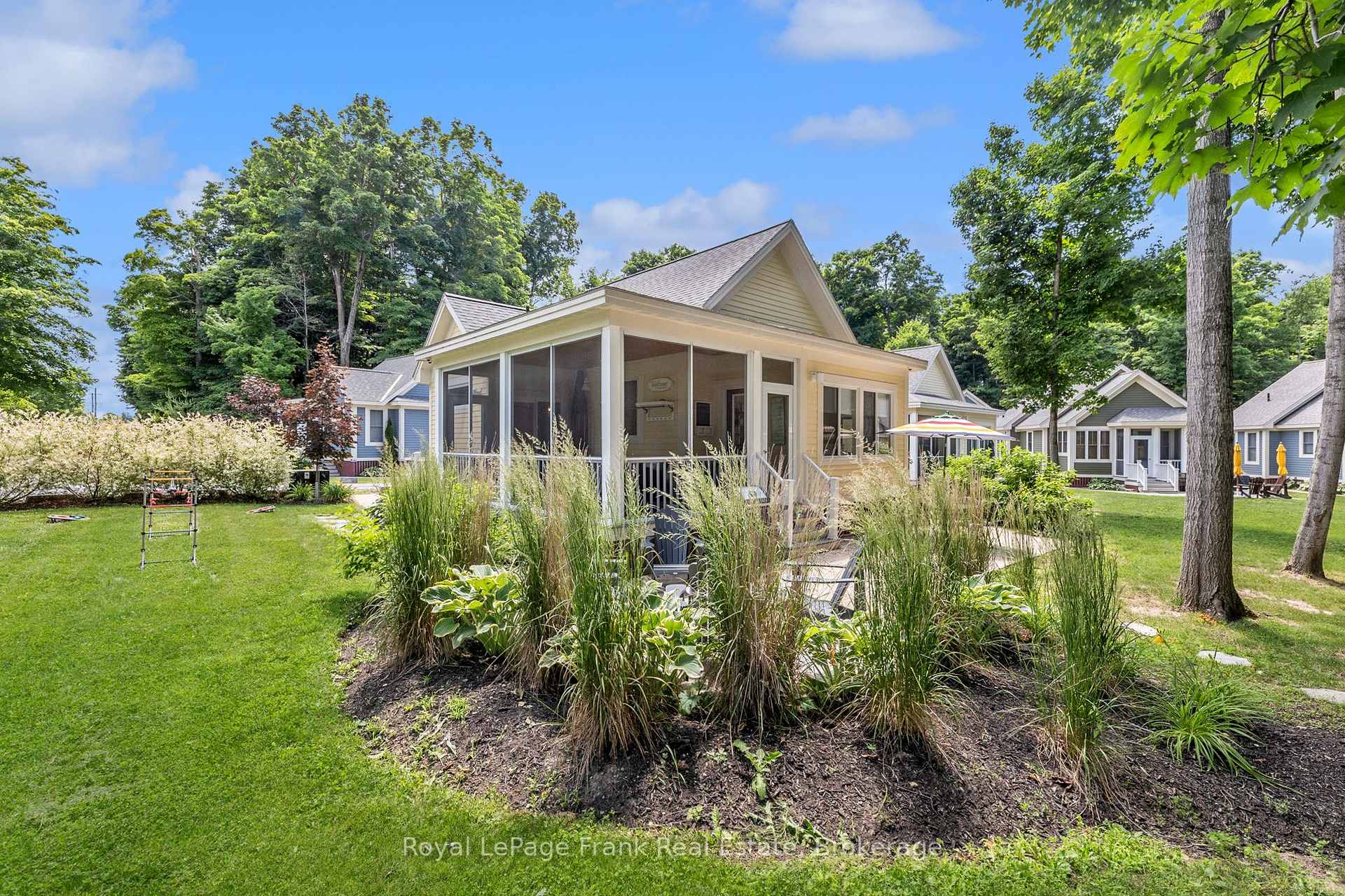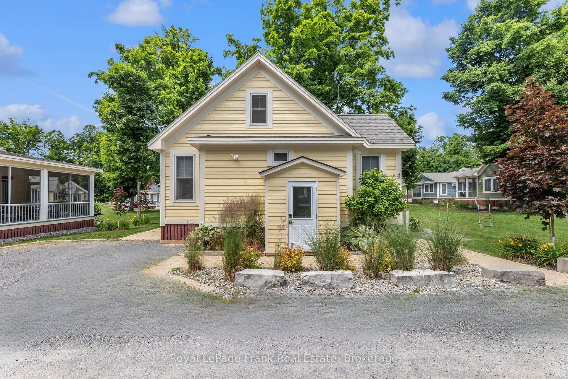 Welcome to 23 Hollow Lane, a beautifully upgraded Picton model bungaloft in the desirable Hollows area of East Lake Shores. One of the largest cottage models in the resort, this well-designed layout offers two bedrooms, two full bathrooms, and a versatile upper loft ideal for additional sleeping space or storage. Tastefully furnished and upgraded throughout, featuring central air conditioning, upgraded baseboards and backsplash, and durable, deluxe vinyl flooring with no carpet. A custom solid-wood ladder leads to the loft, where room-darkening blinds are ideal for night owls who like to sleep in. The main living areas feature Silhouette blinds that can be adjusted from the top or bottom for excellent privacy and light control. All major appliances are included, including fridge, stove, dishwasher, microwave, and washer/dryer. One of the largest screened porches at East Lake Shores features low-maintenance composite decking and a walkout from the primary bedroom. The landscaped yard includes a sizable patio, ideal for relaxing after a day at the lake. A newer storage shed with electricity and lighting provides space for bikes and beach gear, and the property is equipped with an EV charger. Set on an extra-wide lot overlooking a park area with community firepits, the cottage enjoys more outdoor space than typically found. Centrally located within the resort, it's an easy walk to family amenities, including the pool, playground, basketball, tennis, and bocce courts, as well as the waterfront amenities such as the beach, adult pool, gym, Owner's Lodge, and lakeside docks for swimming, fishing, and sunset viewing. A nearby boathouse offers shared use of canoes, kayaks, and paddleboards. East Lake Shores allows flexible ownership-use the cottage as often as you like or rent it seasonally to help offset costs. Minutes from Picton, wineries, restaurants, and beaches, this is a low-maintenance way to enjoy Prince Edward County cottage life.