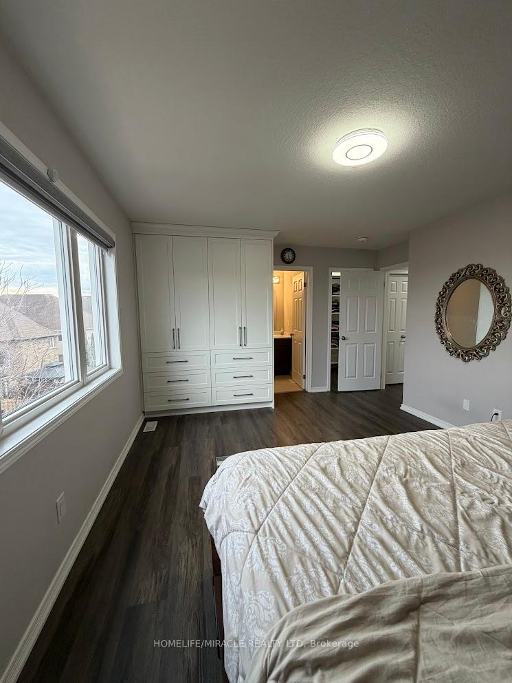 Lots & lots of upgrades to enjoy! Welcome to this beautifully upgraded upper unit offering style, space, and comfort in a highly sought-after family-friendly neighbourhood. This spacious home features 4 bedrooms, 3 bathrooms, and parking for up to 3 vehicles, available from June1st.The main floor offers a welcoming foyer, powder room, custom coat closet, and a well-designed living and dining area. Enjoy a bright, dining room-sized breakfast area alongside a modern kitchen featuring extended cabinetry, quartz countertops, a breakfast bar, and sleek finishes. The 9 ft ceilings, elegant wall panel accents, modern lighting, and pot lights throughout create a warm and contemporary ambiance. The second floor features 4 generously sized bedrooms, 2 full bathrooms, and a convenient laundry room with custom cabinetry. All bedrooms include walk-in closets, with custom closet organizers in two bedrooms for added functionality. A double car garage along with additional parking ensures everyday convenience. Step outside toa spacious 16x20 deck-perfect for relaxing or entertaining. This home also includes smart features such as a smart thermostat, smart lock, and automatic remote-controlled blinds. All light fixtures, a living room wall mount, and a garage fridge are included for added value. Located on a quiet court, just minutes from Huron Natural Area, scenic trails, RBJ Sports Complex, top-rated schools, parks, public transit, and major highways. Enjoy easy access to shopping at nearby plazas including Huron South and Williamsburg. Upper unit only. Utilities split 70/30.A perfect blend of modern living and prime location-don't miss this opportunity!