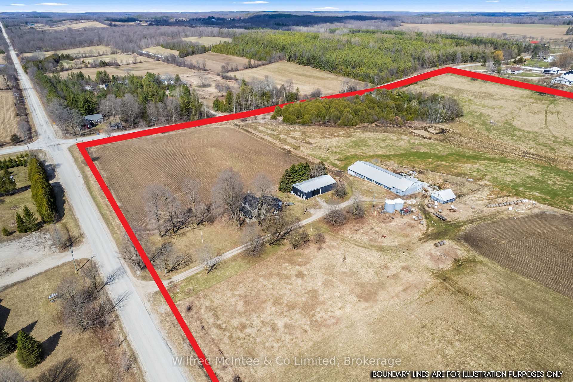 100 acre farm with good 80 acres workable silt loam soil, 1/3 of the farm is systematically tiled (North East field). 4 bedroom 2000sqft century brick farm house; bathrooms, kitchen and laundry room have been upgraded over the years. Barn is 100'x50' with concrete yard, outside water bowl, 50'x20' covered pit silo, 2 steel grain bins. 28'x30' log storage, 30'x64' drive shed, and additional older storage shed. Zoned A1/A2 with some SVCA along small creek bed crossing the property. Hard working family farm since 1961, this parcel has lots to offer.
