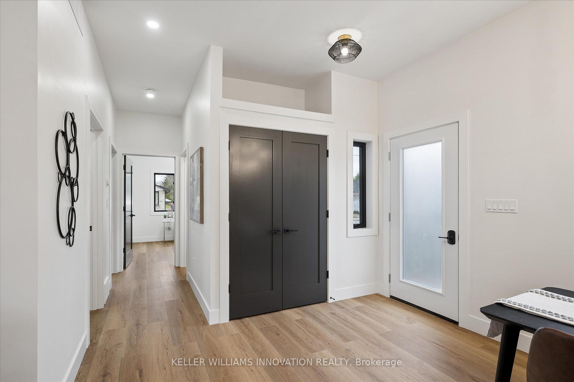 Welcome to this beautifully reimagined century home in the heart of Monkton, where rustic warmth meets modern design. Fully transformed from top to bottom, this home offers a rare blend of charm, quality craftsmanship, and magazine-worthy finishes throughout. Step inside to a bright, thoughtfully designed interior featuring luxury vinyl plank flooring that flows seamlessly through the entire home. At the heart of it all is a stunning custom gourmet kitchen, complete with a wraparound island, granite countertops, contemporary subway tile backsplash, and elegant gold hardware, perfectly designed for both everyday living and entertaining. The Kitchen opens up to the Spacious Living and dining room areas, a perfect place to relax and unwind at the end of the day. The spa-inspired 5-piece bathroom is truly a showstopper, offering a freestanding soaker tub, glass-enclosed shower with rain showerhead, and a double sink vanity creating a relaxing, luxurious retreat. This home features two generously sized bedrooms, enhanced with a beautiful wood plank feature wall that adds warmth and character. A convenient in-suite laundry room with front-loading washer and dryer adds to the home's functional, modern appeal. Extensively updated for peace of mind, this property includes brand new HVAC, a durable metal roof, Hardie board exterior, new windows and doors, concrete driveway and a newly installed septic system. Situated on a large lot, the outdoor space offers endless potential for relaxing or entertaining, while the full 4-foot basement provides exceptional storage. Every detail has been carefully curated in this high-end renovation, offering a truly move-in ready home that perfectly balances historic charm with contemporary style.