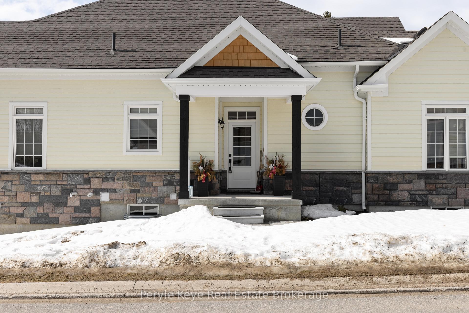 There's a little-known secret in Bracebridge and those who recognize it appreciate what quiet luxury really is. It's felt in places that are well made, well considered, and effortless to live in. Newly built in 2025, this modern townhome is set on a premium lot with nearly $100,000 in thoughtful upgrades and timeless selections. Being an end unit entirely changes the experience. Walls of windows draw natural light in throughout the day. Engineered hardwood floors flow seamlessly across the main level, while smooth ceilings, an upgraded lighting package, and high-quality window coverings-some motorized-add refinement and convenience. The kitchen naturally takes centre stage, featuring upgraded cabinetry that extends to the ceiling, stainless steel appliances, soft close cabinetry, and a generous island made for gathering. In the living room, cathedral ceilings lift the space and a nat gas fireplace brings warmth and balance. This is where you'll wind down the day. A brand-new deck extends the living area outdoors, offering the perfect setting for sunny afternoons, BBQ dinners, and relaxed summer evenings. The primary suite is privately positioned, featuring a vaulted ceiling upgrade, walk-in closet, and lovely ensuite. Your guests will feel right at home in their own spacious quarters with large windows and a nearby 3pc bath. This multi functional space could also be an office, library or additional sitting room. Interior access to the garage adds a layer of day-to-day convenience in all seasons. Downstairs, the lower level walkout is bright, open and full of potential! With a rough-in bath, it's ready for more when you are. Set within the established Waterways neighbourhood, life here feels simple and connected. Downtown, amenities, parks, & healthcare are all nearby and paired with a low-maintenance lifestyle, this address gives you back your time. Quiet luxury rarely needs explaining. When a place feels this comfortable - this considered - you already know why.