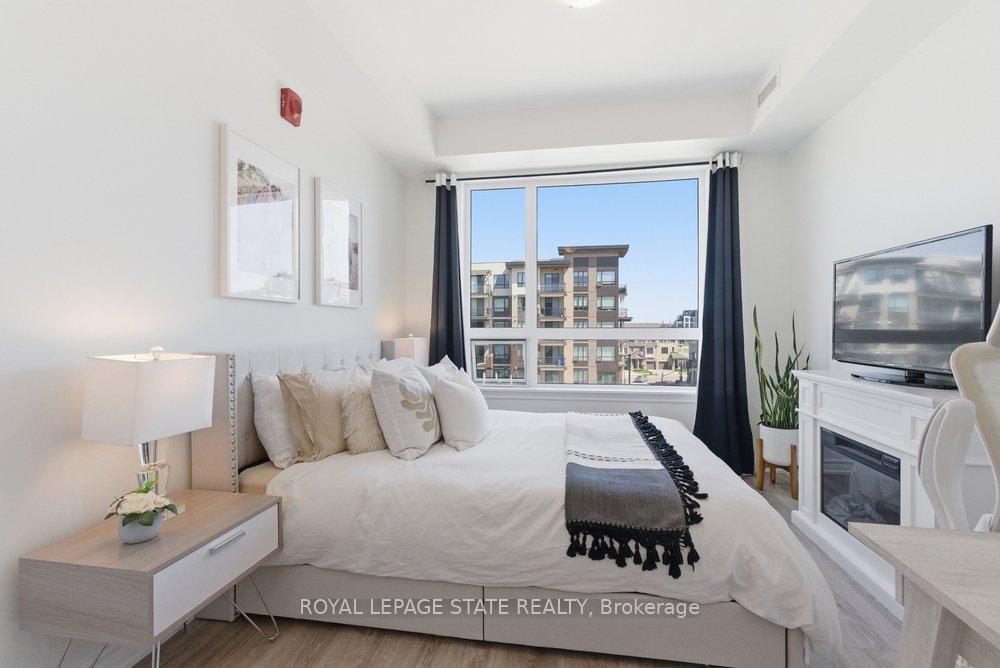 Welcome to Unit 406 at beautiful Lake House condo in the heart of Grimsby-On-The-Lake, offering the perfect blend of modern living and waterfront lifestyle. This bright, open-concept suite features a stylish kitchen with quartz countertops, sleek cabinetry, stainless steel appliances, and a large island with seating, seamlessly flowing into the living and dining areas. Expansive windows fill the space with natural light and views of the lake and vibrant community. Sit back and relax on your choice of 2 stunning covered balconies, one facing south, one facing east. The unit offers well-sized bedrooms, including a primary retreat with ample closet space, along with a modern 3-piece bath. Thoughtfully designed with neutral finishes and quality flooring throughout, this home is truly move-in ready. Residents enjoy access to impressive building amenities including a pool, party room, fitness area, and outdoor spaces. Just steps to Lake Ontario, waterfront trails, parks, cafés, restaurants, and all amenities, with easy access to the QEW-this is low-maintenance lakeside living at its best.