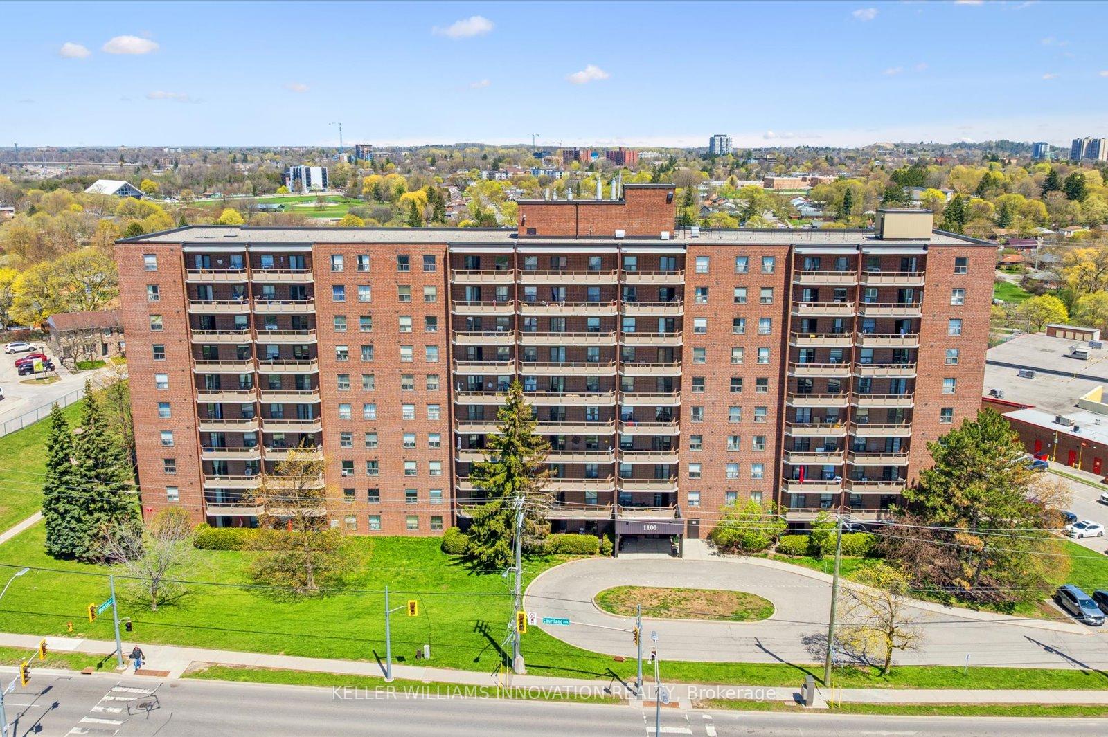 Experience maintenance-free living in this fantastic two-bedroom condo apartment at Courtland Terrace! Spanning over 950 sq ft, this east-facing unit has several updates, including laminate flooring, crown moulding, and updated trim and baseboards. The layout features a bright, spacious living room with a separate dining area and a fully renovated kitchen. The kitchen features quartz countertops, a stylish backsplash, white cabinets with ample storage, and stainless steel appliances. There are two generously sized bedrooms, an updated four-piece bathroom, and a large in-suite storage closet. Just off the living room, you will enjoy a private balcony with wood deck tiles. The building offers amenities such as an outdoor pool, ample green space, visitor parking, an exercise room, and a sauna. Condo fees cover water, hydro, and heat! Conveniently located just steps away from the Block Line LRT station, you will also be close to parks, the Country Hills Library, and a short distance to the Conestoga Parkway, Fairview Park Mall, schools, shopping, dining, and more!