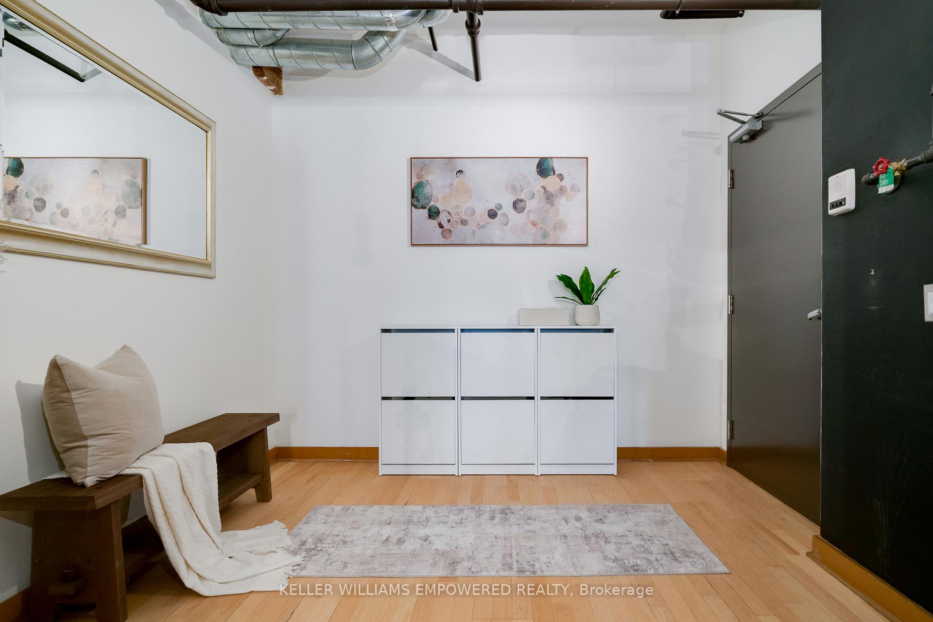 Welcome to Suite 5 of the Boiler Factory Lofts, a boutique heritage conversion with only 11 units. This is a rare opportunity to own a piece of history with exceptional value potential, thanks to the upcoming Ontario Line subway and redesigned park across the street. This true hard loft with low monthly fees offers 890-sqft featuring exposed brick & beams, 10-ft ceilings, oversized windows flooded with natural light, and a 30-ft statement chalkboard wall. The fully upgraded kitchen boasts ceiling-high cabinets and features a Viking professional gas range and hood, Blomberg fridge, Grohe semi-professional faucet, and Franke fireclay farmhouse sink. Thoughtful layout includes spacious bedroom that can easily accommodate a king-sized bed, formal dining area, two closets, ensuite storage unit, and laundry closet. Experience total Zen in your own 243-sqft. private rooftop terrace with striking skyline views, a true urban oasis for relaxing or entertaining. Convenient parking on Britain Street with direct rear access to the building. With a walk score of 98, you are steps to St. Lawrence Market, Distillery District, Financial Core, Eaton Centre, multiple parks, and have quick access to the Gardiner and DVP.