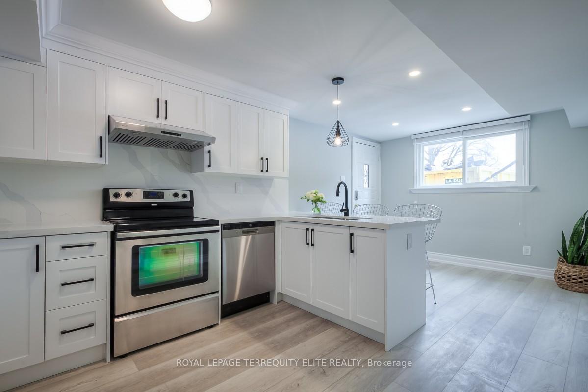Immaculate Legal Furnished Apartment! ***Fully Complied with Fire Code for Safety & Protection! *** Desirable North York Location! <<>> Newly Renovated Home With Newer Modern White Kitchen, Newer Stainless Steel Fridge, Dishwasher, Rangehood; Newer Full Size Front-Load Washer & Dryer! Elegant Quartz Counter & Backsplash, Newer Luxury Vinyl Floors Throughout! Spacious Living Room With Large Window letting in Lots Of Natural Sunlight! Good Size Bedroom With Wide Window & Closet, Open concept Den Can Be Used As Office Or Breakfast Area! Wonderful Ground Level Separate Entrance! Excellent Highly Demanded Location! 8 Mins Walk To a Plaza With a Supermarket, Restaurants, Bakery, Dollarama, Beer Store, Macdonald's, Etc. Short Walk To Don Mills Subway, Fairview Mall, T&T Supermarket, Library, Movie Theatre, Parks, Schools, Community Centre With Pool & Basketball Court. Close To Hwy 404, 401 & Seneca College