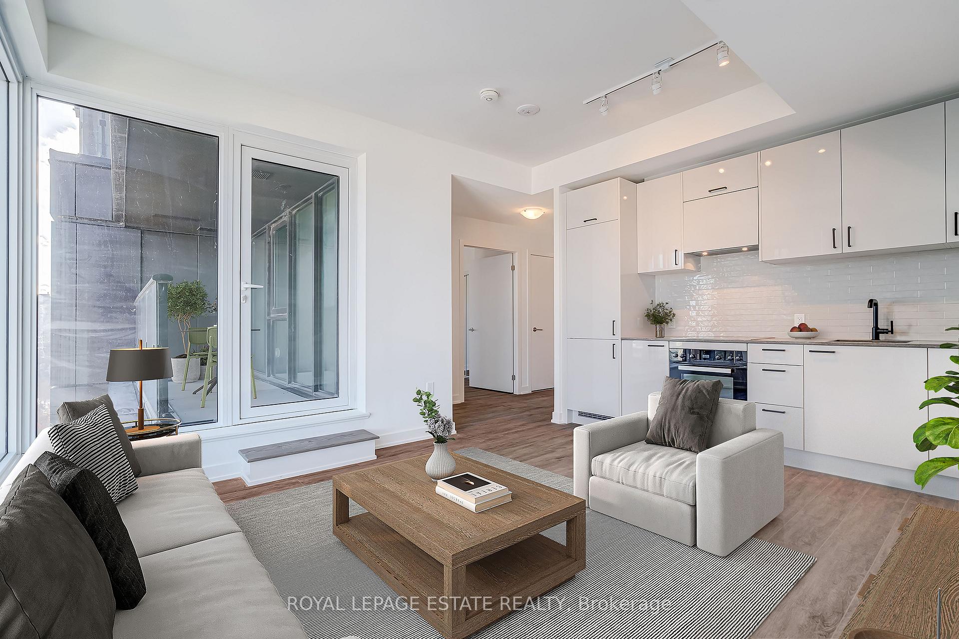 Welcome to One Crosstown Condos! This brand new never lived in barrier free unit is ready to create some cherished memories! Featuring a wide front foyer and spacious bathroom with a glass stand up shower featuring beautiful porcelain tiles. The sleek European inspired kitchen features built in Miele appliances and a gleaming black stainless steel undermount sink and Kohler kitchen faucet! The living area features floor to ceiling windows offering lots of natural light and east facing views and a walk out to your extra wide balcony. The bedroom features a large mirrored closet and floor to ceiling windows to maximize light! Close to everything at Don Mills and Eglinton including grocery stores, shops and TTC! - Property is virtually staged