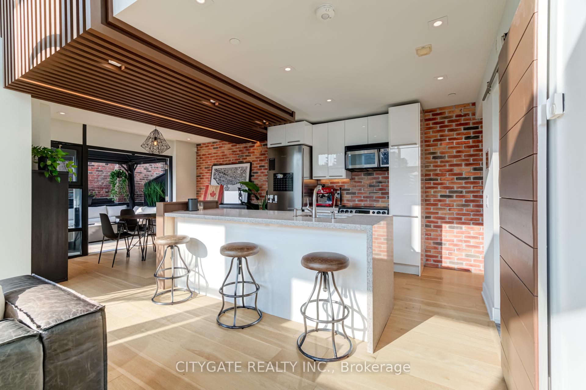 Unfurnished or Furnished Option 2-Level Penthouse In The Coveted Boutique Massey Harris Lofts. No Expense Spared with thoughtful Design and Upgraded Functionality Permeating through Approx - 1000 Sqf + 500 Sqf (L-shaped Wraparound Terrace) of Space, Enter to Lutron Automated-Blind System and Mood Lighting/Indoor-Outdoor Sonos Arc Sound, Fully Automated Through A Touchscreen Wall Unit Or Mobile Device, Elegant Design - 17 Foot Floor to Ceiling Custom Media Wall, Custom Wood Enclosure, Upgraded Touch of Luxury Hotel Washrooms, Bright Oversized Windows, Hardwood Thru-Out W/Infloor radiant heating, Flowing Elevated Wood Terrace Merges Indoor-Outdoor Living Overlooking Massey Harris Park. Best OF Toronto At Your Doorstep Conveniently Located At King West, Steps to Stanley Park, Trinity Bellwoods, Art And Lifestyle Boutiques Of Queen Street and Restaurants Along Ossington.
