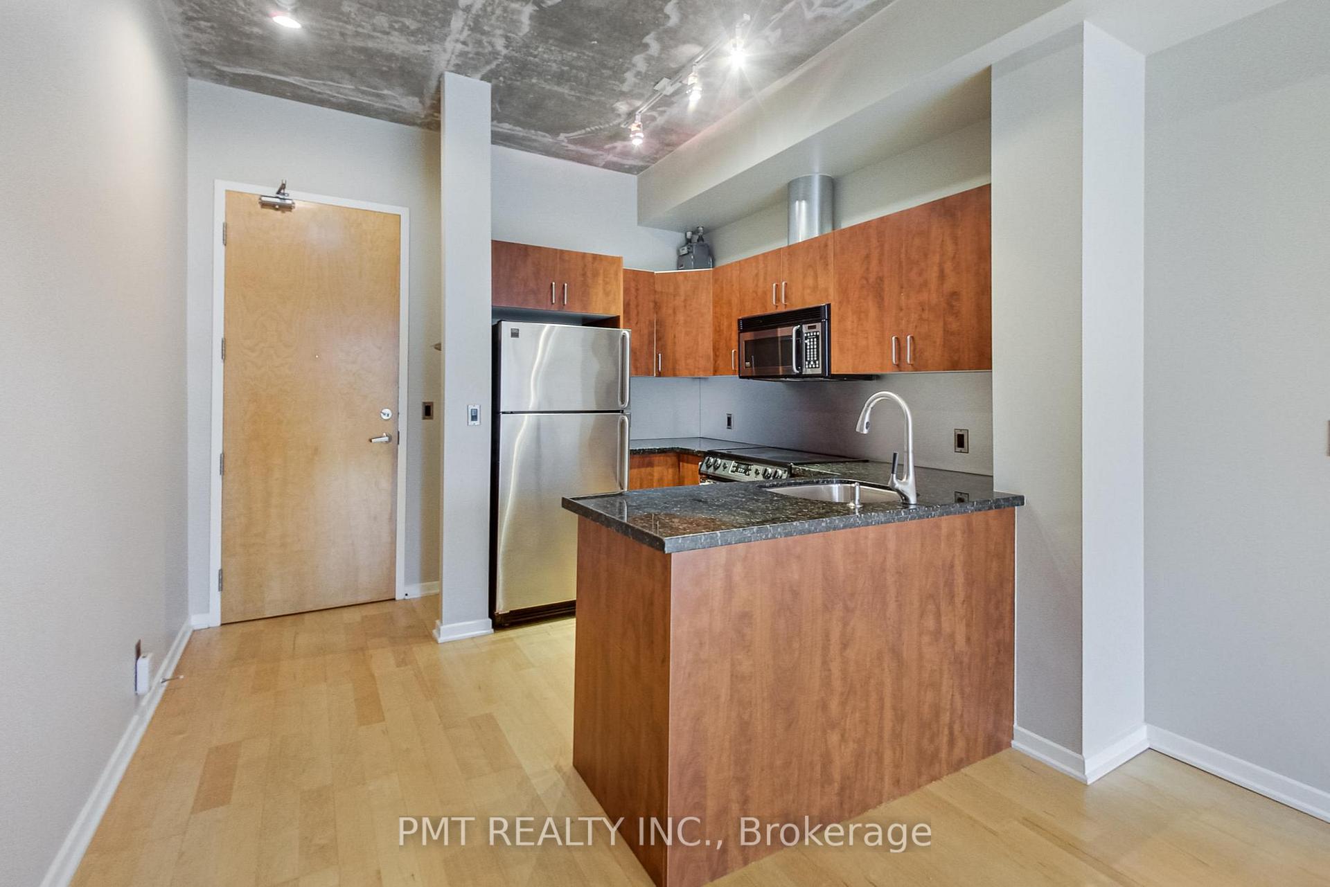 Introducing a rare offering at the iconic District Lofts - an award-winning boutique building celebrated for its architectural design and timeless urban character. This beautifully appointed 2-storey, 2-bedroom loft combines style, function, and an unbeatable downtown lifestyle. The main level features an open-concept kitchen, living, and dining area with soaring concrete ceilings and floor-to-ceiling windows that fill the space with natural light. Step out onto your south-facing balcony and enjoy unobstructed views of the city skyline - and the added benefit of BBQ use permitted, a rare luxury in condo living. Upstairs, you'll find two generously sized bedrooms and a well-designed 4-piece bathroom, offering both comfort and privacy away from the main living space. Perfectly situated between King West and Queen West, you're just moments from Toronto's best shopping, dining, entertainment, and transit. A true urban oasis for those seeking a stylish downtown home in one of the city's most sought-after neighbourhoods.