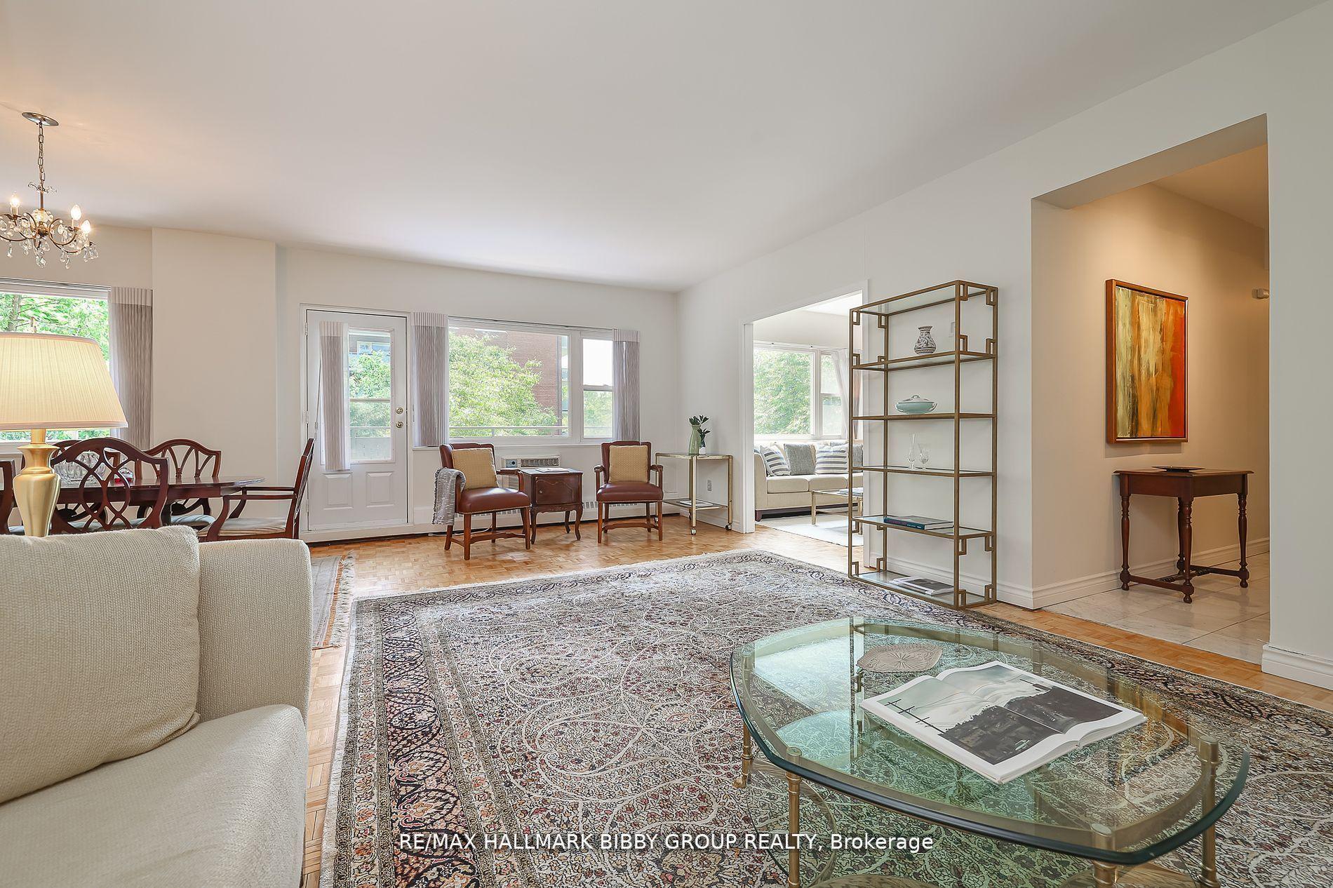 A Timeless Rosedale Residence, This Expansive Two-Bedroom + Study Situated In The Highly Desirable Kensington Apartments Co-Op, Provides An Unrivaled Living Experience. The Rarely Offered Southeast Exposure Supplies An Abundance Of Natural Light, Tranquil Tree-Lined Views And Access To Two Impressive Exterior Spaces. The Airy Principal Rooms Are Ideal For Entertaining Of Any Scale And Seamlessly Integrate Into An Expansive Private Balcony Oasis Overlooking The East Gardens. The Convenient Contemporary Kitchen Includes Full-Sized Appliances, Stone Countertops And Ample Storage. The Expansive Primary Bedroom Retreat Includes An Ensuite Bathroom, Large Walk-In Closet And Access To A Breathtaking Secondary Balcony With Sun-Drenched Southern Views. The Large Second Bedroom Features Two Double Closets. The Impressive Family Room Showcases A Custom, Built-In Shelving Unit And Fireplace. Unbeatable Location - Easy Access To Castle Frank Station, Craigleigh Gardens, Beltline Trail/Park Drive Reservation, Ever Green Brickworks & Steps To Danforth And The Shops Of Bloor Street. World Class Amenities Include Full-Time Concierge And Outdoor Swimming Pool. Maintenance Fees Include Property Taxes, Water, Building Insurance, Common Elements, Cable TV And Wifi (Bell Fibe). Parking Spaces Are Available Indoor For $94 and Outdoor For $64 Per Month.