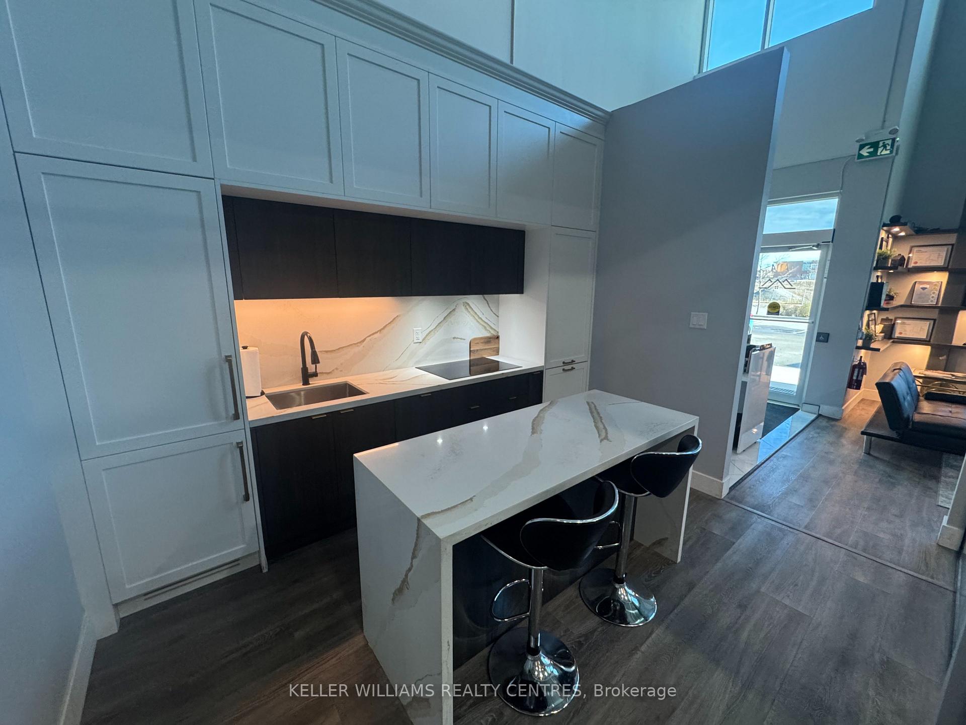 Experience a luxury workspace crafted with premium finishes and smart, modern design. This fully transformed commercial unit offers the perfect blend of professionalism, comfort, and functionality-ideal for a wide range of business operations.Main Floor - Approx. 1,800 sq. ft.The main level features four private offices, a dedicated boardroom, and an inviting front lounge highlighted by a contemporary fireplace-creating a warm, professional space for clients and staff. A beautifully finished kitchenette and a mid-sized dining area offer everyday convenience, while a modern washroom completes the layout.Upper Mezzanine - Approx. 600 sq. ft. The mezzanine level includes a spacious executive office with an attached boardroom, perfect for leadership functions and confidential meetings. A soundproof media room adds versatility for presentations, recording, or secure communications. A bathroom with a shower provides additional comfort and flexibility.Completely renovated after purchase, this unit offers a true turnkey workspace with exceptional value and design.Key Features: High-exposure location fronting Mostar Street Stunning showroom and office layout Bright, modern finishes with large windows and abundant natural light.