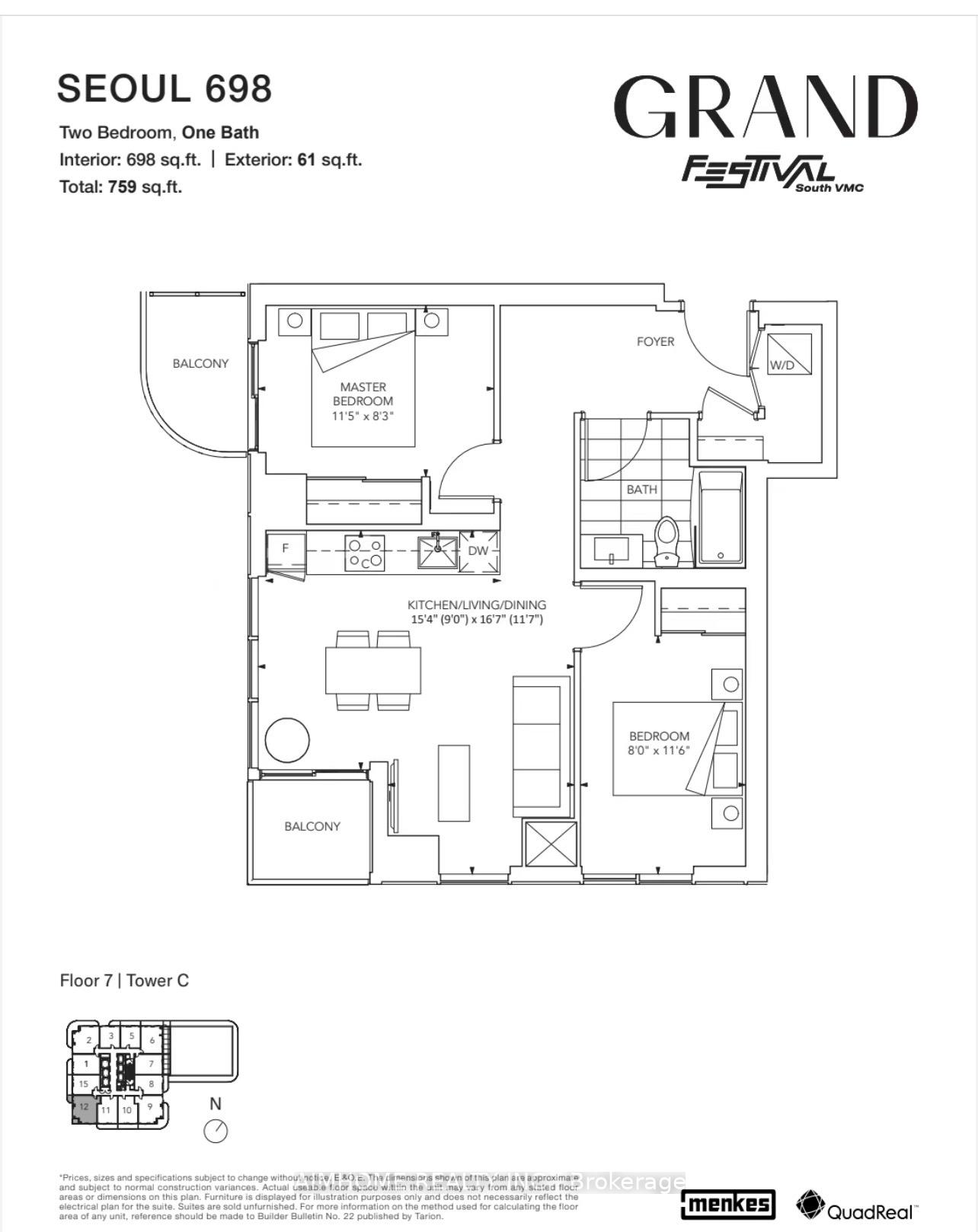 Festival Tower C - Brand New Building (going through final construction stages) 698 sq feet - 2 Bedroom & 1 Full bathroom, Balcony - Open concept kitchen living room, - ensuite laundry, stainless steel kitchen appliances included. Engineered hardwood floors, stone counter tops. 1 Parking Included