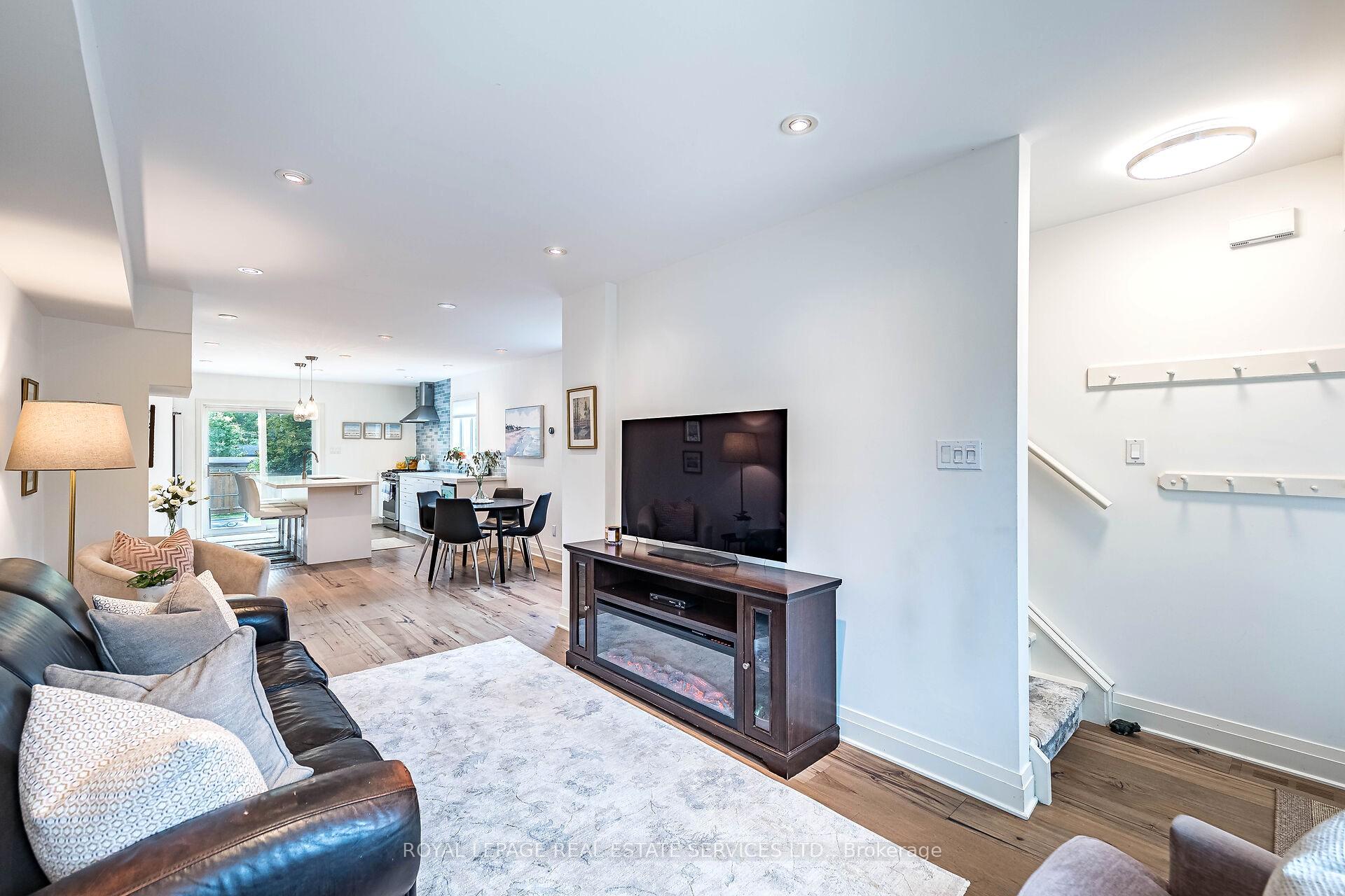 Just steps to the Lake - this simply delightful, recently renovated home offers turn-key living, stylish updates & modern decor! This captivating, 3-bedroom, 2-bathroom home is literally a stone's throw from the Lake; it is the 1st house from Lake Shore Dr, the Waterfront Trail, and lakeside Cliff Lumsden Park with spectacular sunrises and panoramic views of Toronto's skyline. Imagine the joy of walking the dog, feeding the ducks, skipping pebbles and seeing sailboats coasting by while strolling, cycling or jogging along the Waterfront Trail! The open-concept main floor was renovated in 2022 and is a bright, open-concept living space that is perfect for everyday family living and entertaining alike. The gorgeous, well-appointed chef's kitchen offers an abundance of timeless shaker-style cabinets, loads of counter space, a large island complete with a wine fridge and a walk-out to a sunny, west-facing backyard with an impressive, 2-level deck and Jacuzzi hot tub. It is a perfect place for BBQing with family and friends! The 2nd floor is freshly painted in Cloud White by Benjamin Moore and enjoys 3 comfortable bedrooms, including a 'King-sized' primary bedroom with wall-to-wall closets. The exquisite 5-piece bathroom offers a separate bathtub, shower and double sinks. The lower level was refreshed in 2024 and enjoys a fitness area with laundry closet, a cozy rec room, a home office nook, a 4-piece bath, a utility room and storage. Best of all, the basement has soaring 8-foot ceilings. Additional updates also include front yard hardscaping with inlaid pavers ('24); resurfaced private driveway ('22), re-shingled roof ('20), new front porch & a refreshed 2-tiered back deck. Steps to schools, pools, shopping & public transit. And, it's just a short commute downtown. Dreaming of living near the lake? Dream no longer! Now you too can enjoy the excitement of Life-by-the-Lake!