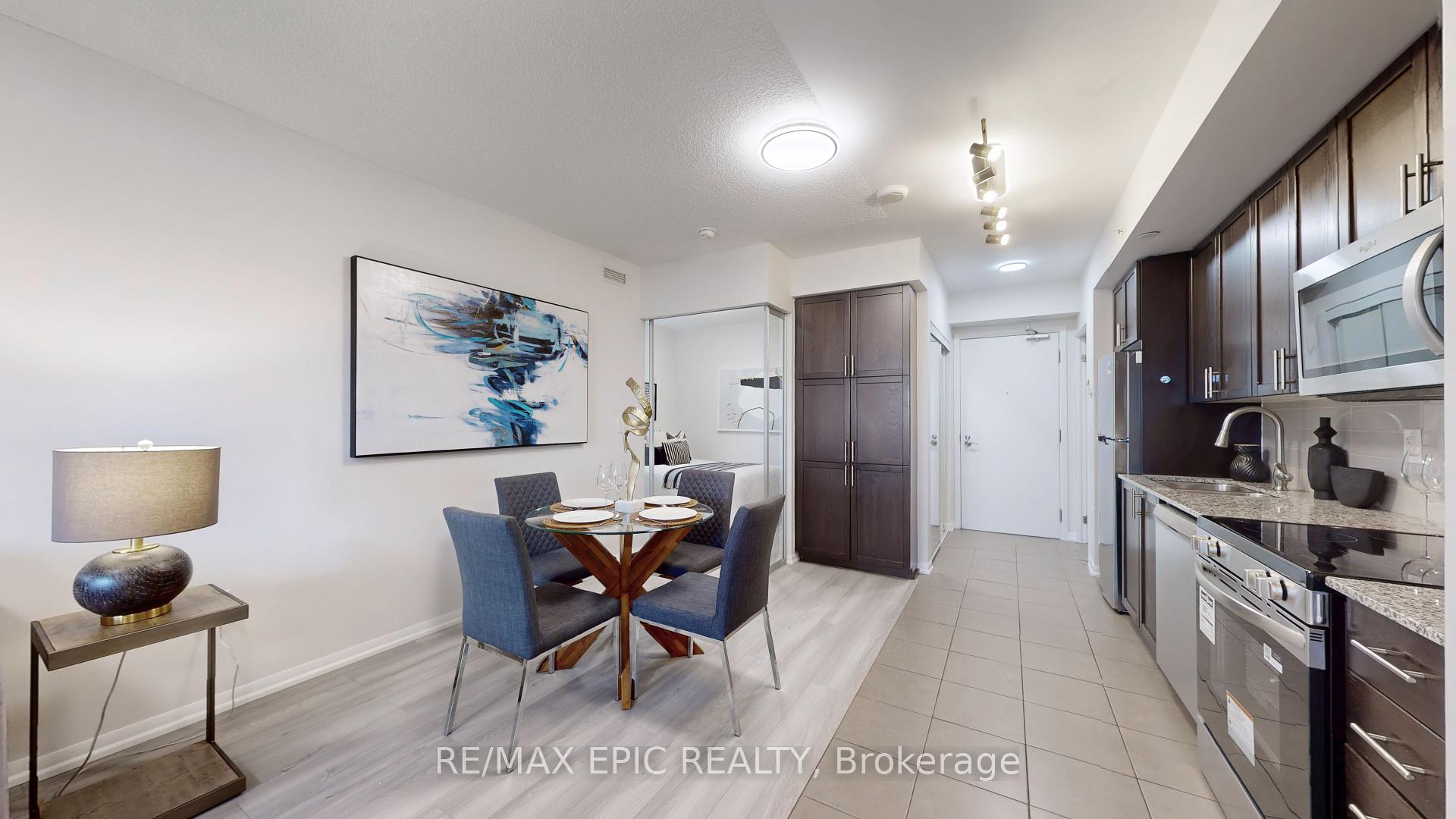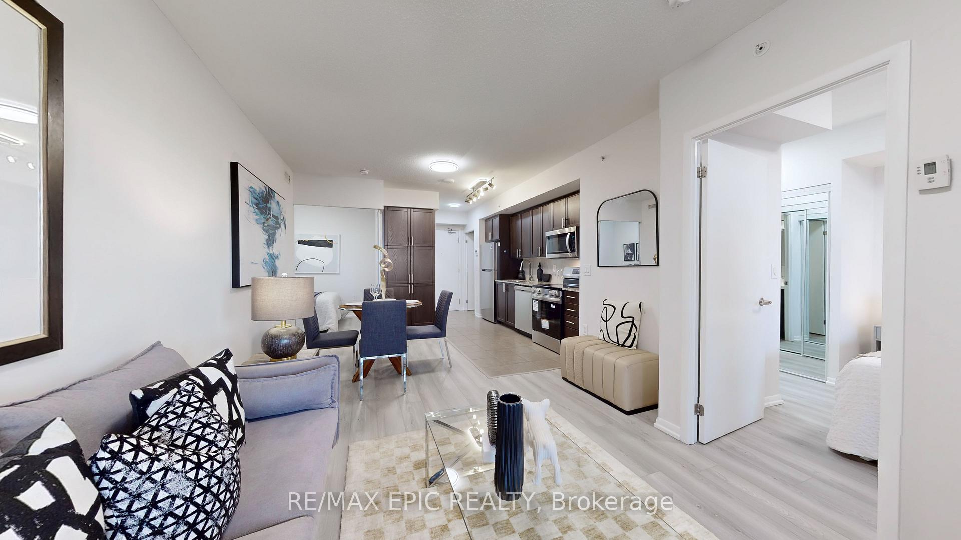 Welcome to the Italian-inspired, master-planned community of Treviso, set within a well-established neighbourhood. Transit is right at your doorstep and you're just a short walk to Shoppers Drug Mart, children playground, parks, Lawrence West Subway Station, Lawrence Allen Centre, churches, schools, the Columbus Centre, grocery stores, shops, restaurants, cafés, and more. Minutes to Prestigious Yorkdale Mall, with a quick subway ride to downtown and easy access to major highways.This lovely, newly renovated suite features a desirable split 2-bedroom layout with an open-concept design, new laminate flooring, fresh paint, new stainless steel fridge, stove, dishwasher, and updated light fixtures. Kitchen comes with pantry for extra storage. An impressive oversized covered terrace extends your living space outdoors-perfect for relaxation or entertaining. Offering 682 sq. ft. (as per plan), the suite includes two well-proportioned bedrooms and two full bathrooms, making it ideal for first-time buyers, young families, professionals, or investors.Treviso residents enjoy exceptional amenities including an indoor pool, saunas, rooftop hot tub, fitness centre, party room, spacious outdoor lounge with BBQ area, 24-hour concierge, and plentiful underground visitor parking.