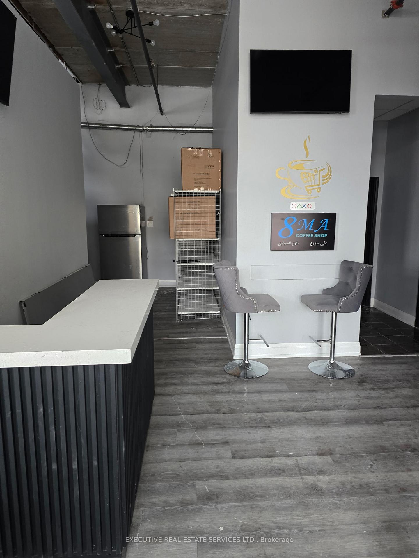 Fully licensed café/lounge for sale in a prime Mississauga location, offering exceptional visibility with two entrances, abundant parking, and quick access to Highways 401, 403, and 410 and steps to Mississauga transit, TTC and minutes to Square one. The unit could be set up as a stylish coffee and shisha lounge with a gaming area on the second level, and comes with PS5, TVs, chairs, tables, modern interior that can be customized to suit your concept. All permits are completed. This versatile, high-exposure commercial space is ideal for a café, lounge, gaming spot, dessert shop, juice bar, medical or dental clinic, wellness practice, or professional office. A rare turnkey opportunity in a thriving corridor.