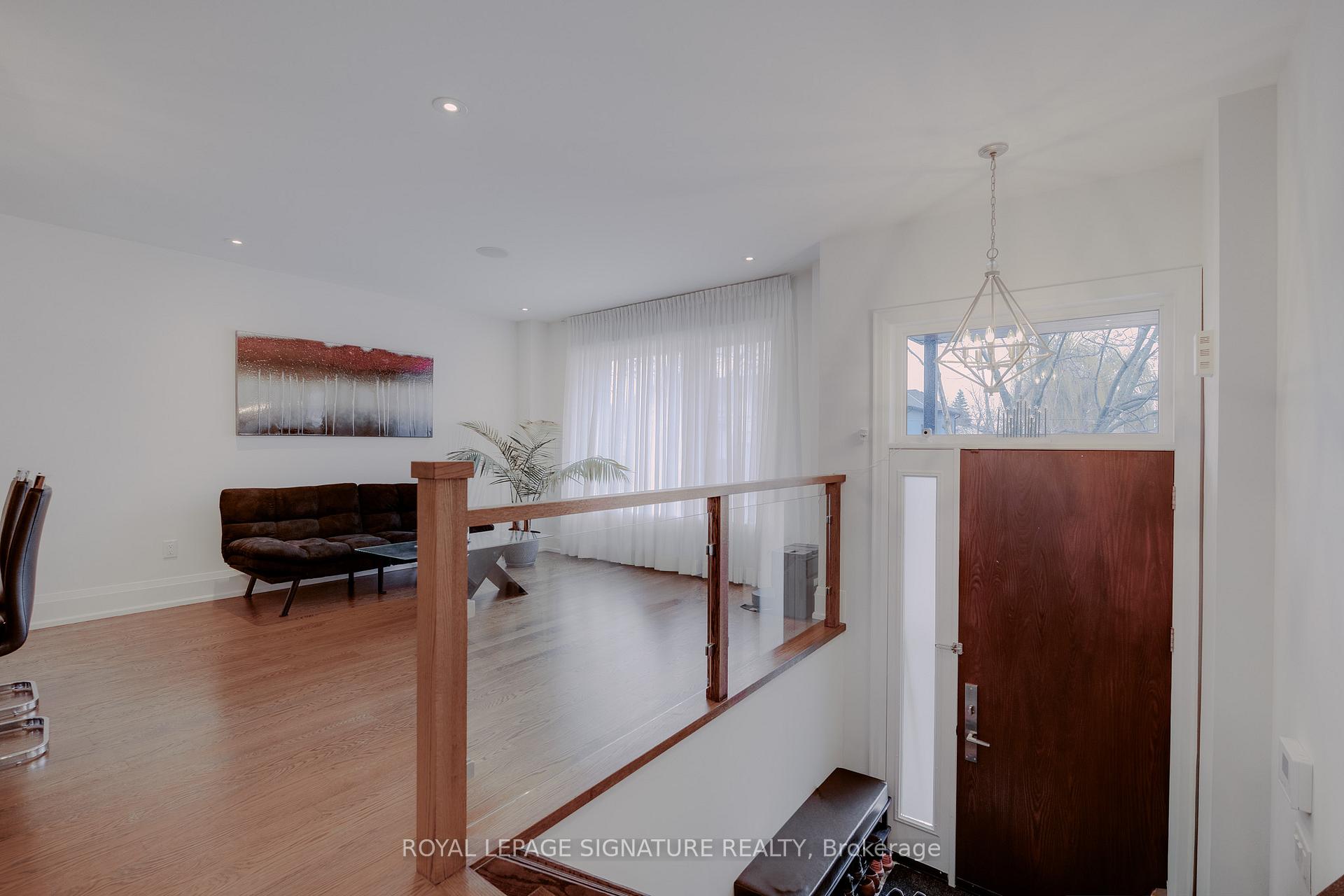 Welcome To This Stunning Two-Storey Detached Home In The Highly Sought-After Etobicoke-Mimico Neighbourhood. This Impeccably Built Residence Offers Sophisticated Living Across Every Level. Step Inside To Discover An Expansive Living Room And Dining Area, Perfect For Both Entertaining And Everyday Living. The Gourmet Kitchen Features 12 Ft Ceiling, Lighted Cabinetry, Premium Quartz Countertops, A Generous Center Island, And Stainless Steel Appliances. The Family Room Features 12 Ft Ceiling, A Cozy Fireplace And Walk-Out To A Deck And Beautifully Landscaped Backyard. The Home Boasts 3 Generously Sized Bedrooms, Each With 9-Foot Tray Ceilings. Natural Floods The Upper Floor Through Multiple Skylights, While Modern Glass Railings Add A Contemporary Touch Throughout. Light With 4 Bathrooms Total (Including 3 Full Bathrooms And A Convenient Main-Floor Powder Room),This Home Is Designed For Comfort And Functionality. The 9-Foot Basement Ceilings Create A Bright, Inviting Lower Level With Its Own Walk-Up Access To The Backyard. Additional Highlights Include Hardwood, Marble, and Porcelain Flooring, Abundant Storage, Integrated Security Camera System, And A Built-In Garage For Added Convenience And Peace Of Mind. This Is A Rare Opportunity To Live In A Meticulously Cared-For Home In One Of Toronto's Most Desirable Waterfront Communities.