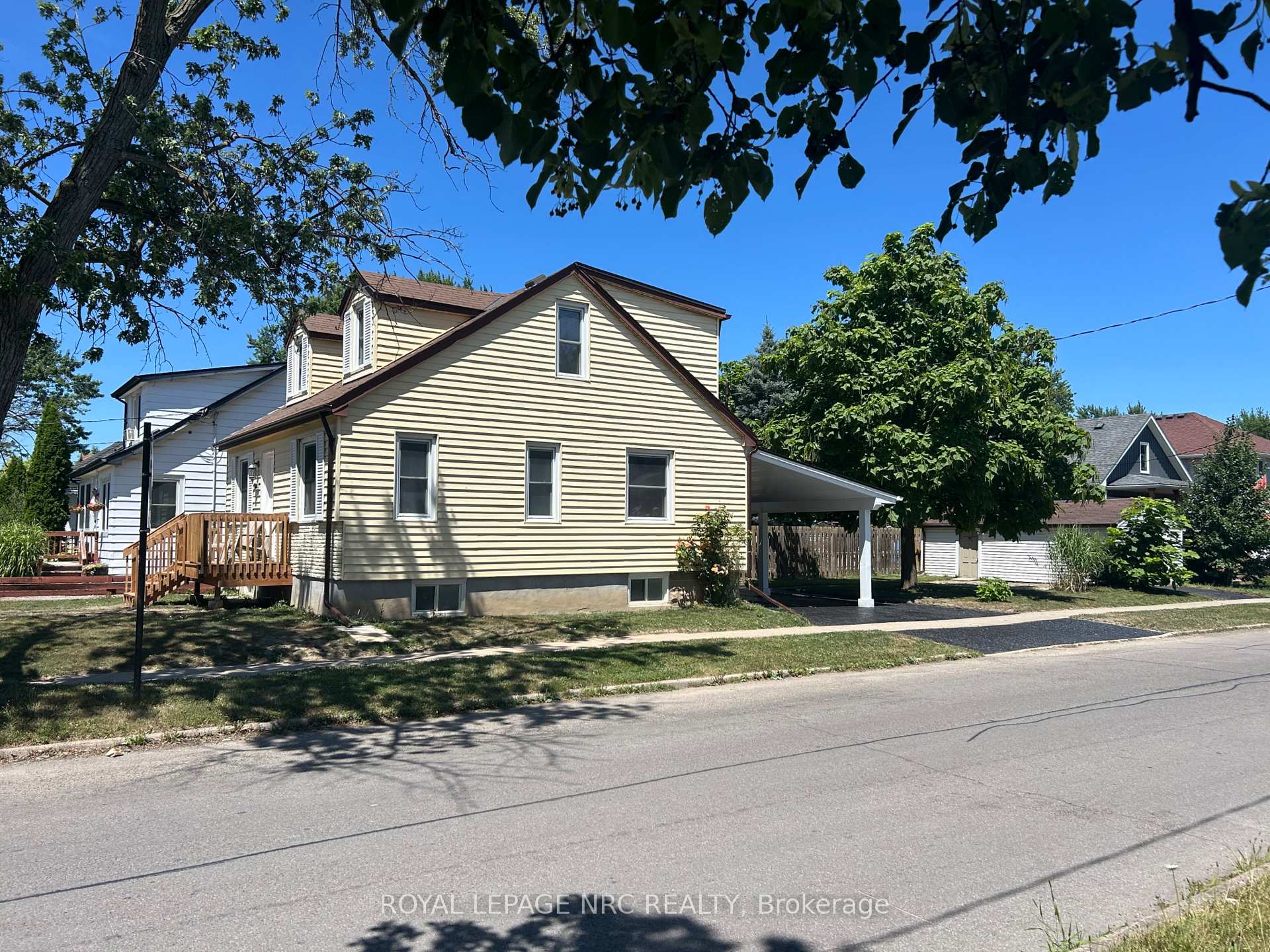 Cute 4 bedroom, two-storey home with detached garage located on a mature street in West St. Catharines. The main floor boasts hardwood flooring, spacious kitchen with plenty of cabinets overlooking the bright dining space, separate living room provides plenty of space to entertain, a comfortable bedroom and 2 piece bath finish off the main floor nicely. The 2nd floor includes 3 good size bedrooms and a renovated 4 piece bathroom. The basement includes a full walkout, utility room & 2 piece bath and plenty of space to finish your way. Exterior features include a covered carport, detached garage and large partially fenced yard. Recent updates include eavestrough leaf protector (2021), carport (2019), new front and rear decks (2025), Lennox central air and furnace (2015) and Roof (2014). Multiple rental unit situation may be possible. Located close to parks, walking trails, shopping, train station, Brock University and other amenities.