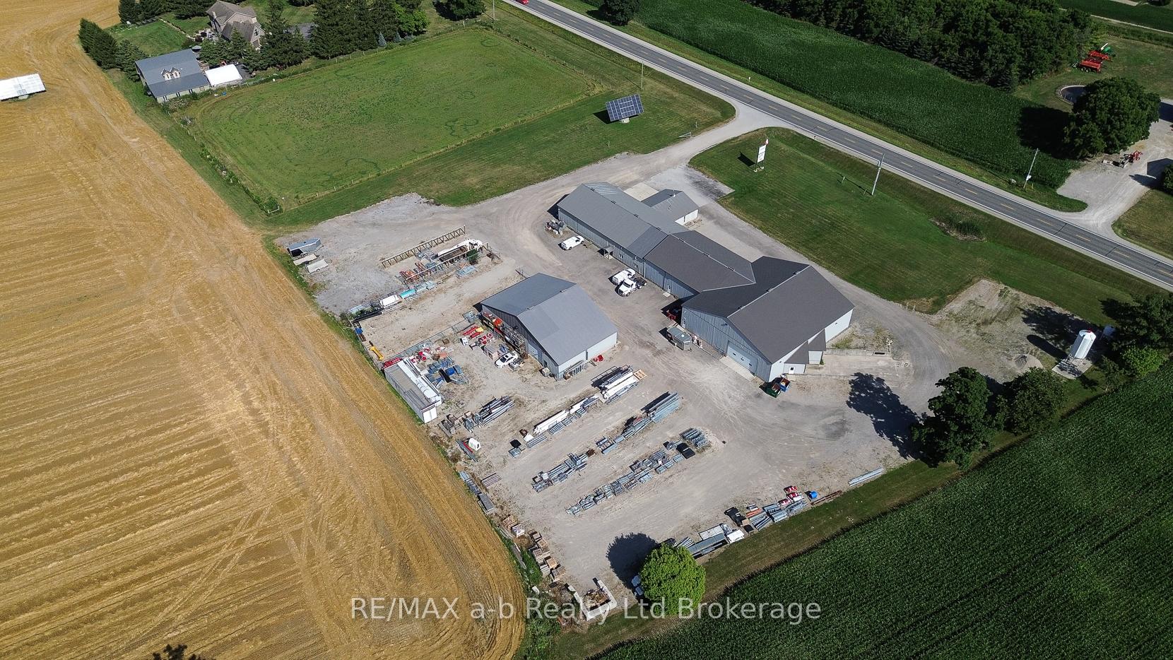 Excellent opportunity for a Commercial Building on 4.56 acres, North of London on Elginfield Road, West of St. Marys. Main building, consists of large retail/showroom, with receptionist counter, parts counter, service department area, 8 offices, boardroom and 2 bathrooms. Epoxy flooring and generous lighting throughout. Mezzanine includes, 4 offices, staff lunch/training room and additional storage. Main Warehouse area features in-floor heating with 2 loading docks, two roll up doors and 5 man doors, receiving office, bathroom and staff locker room. Natural Gas heating and 400 amp service. Back Warehouse/Shop is 4000 sq ft. - with three overhead doors and two man doors, radiant tube heating. Excellent exposure on high traffic road for displaying equipment, yard space for inventory and plenty of parking for customers and staff. Just Over 20,000 sq ft with an additional 2100 sq ft Cover-All. Property is Zoned C3 Farm Commercial.