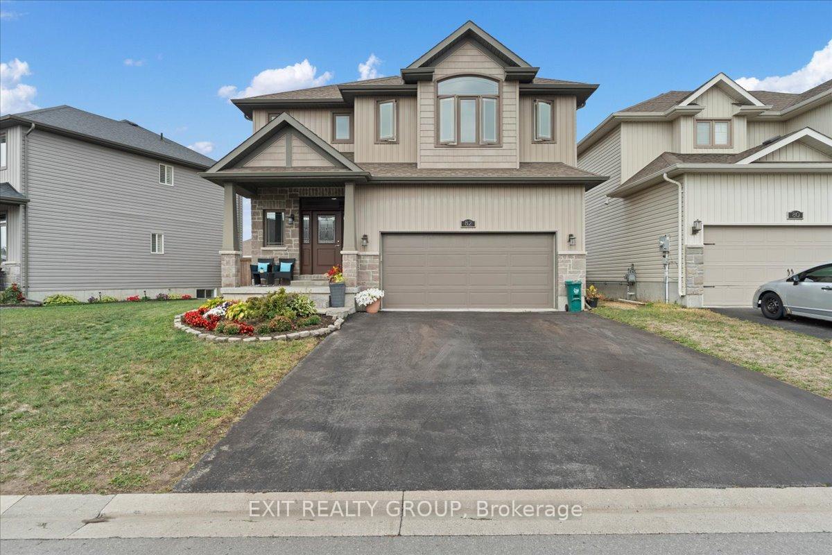 Welcome to this stunning, modern 3 bed, 2.5 bath 2 storey home with an attached 2 car garage nestled on an extra-wide, irregular pie-shaped lot offering the ideal fusion of elegance, size, and utility in the highly sought-after Heritage Park community. Upon entry, you are welcomed by an attractive, free flowing floor plan. The polished, contemporary kitchen effortlessly connects to the dining room and the voluminous family room, providing a superb setting for leisure and social gatherings and a 2 piece powder room. The upper-level reveals three spacious bedrooms and two complete washrooms. The primary sanctuary is a genuine haven, featuring a walk-in wardrobe and an exclusive four-piece ensuite. For ultimate convenience, an oversized laundry room is also thoughtfully located on the second floor. The unfinished lower level offers boundless potential for customization - envision your own bespoke fitness area, home study, or extra guest suite. Outdoors, the huge, fully enclosed backyard serves as your secluded haven, boasting a sweeping deck and an oversized patio with a pergola - perfectly suited for outdoor dining and summer festivities. Further attributes include a drywalled double garage and a double asphalt driveway. Positioned mere steps from a neighborhood park, school bus stop, the Quinte Sports & Wellness Centre, Quinte Mall, retail amenities and the 401, this residence is truly comprehensive. Secure your viewing appointment without delay!