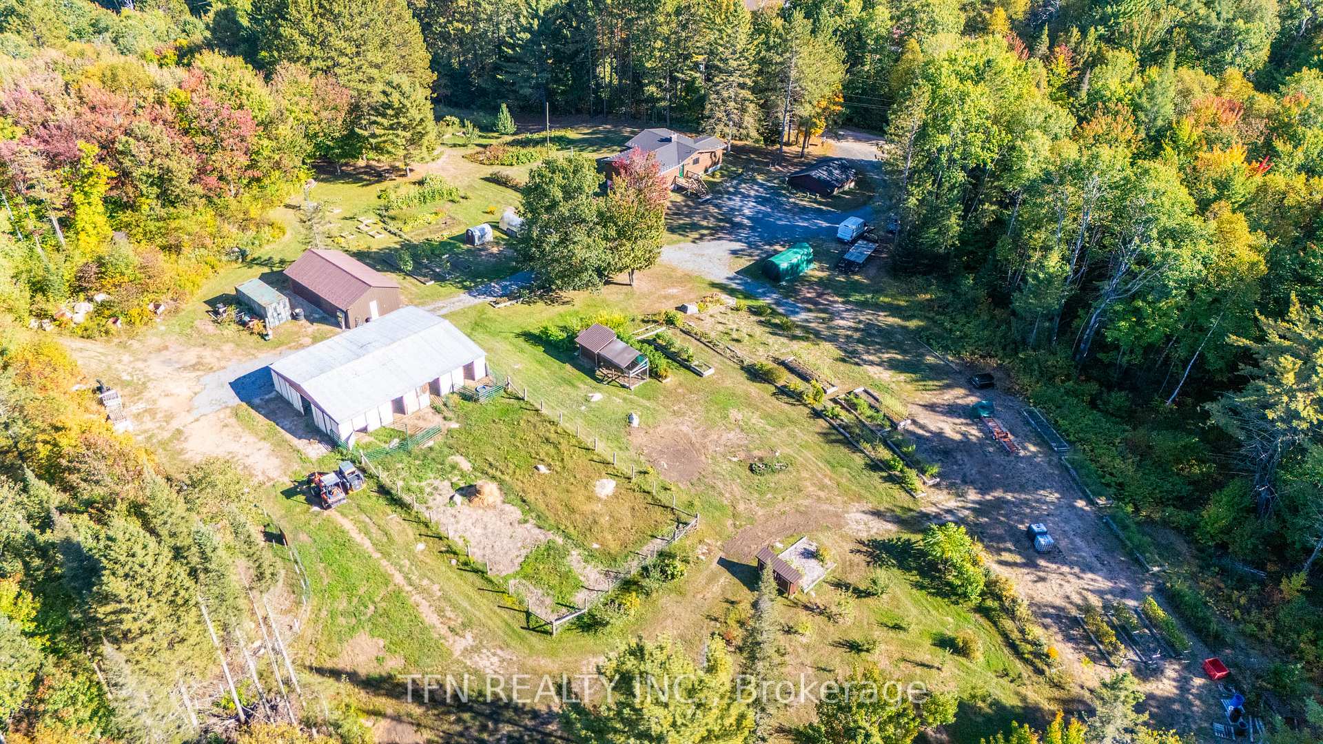 Discover a tranquil retreat on 25 acres of picturesque woodlands, complete with a serene stream, nestled in a private setting. This modern rural residence is conveniently located just 20 minutes from Burk's Falls or Sprucedale, with public boat launches only a 10-minute drive away.This incredible property boasts two detached car garages and a spacious 36x50 barn featuring eight stalls, a 20x30 shop, a chicken house, and a new 8x8 greenhouse. Enjoy the fruits of your labor with thriving apple, pear, raspberry, blueberry, and cherry trees, along with a flourishing asparagus patch.The home offers a perfect blend of modern and rustic design, featuring an open-concept living area that seamlessly integrates the kitchen, dining, and great room. A cozy gas fireplace adds warmth and ambiance, making it an inviting space for gatherings. The kitchen is equipped with ample cabinetry and counter space, along with a stove and cooktops for all your culinary needs. The walkout basement includes large patio doors, providing easy access to the outdoors. This level also features a separate laundry room, storage area, guest room, and an additional bedroom, complemented by a second wood stove. Two rooms in the basement have been converted into a dry room and an extra insulated cold room, adding functionality and convenience. Wildlife abounds on this stunning property, making it an ideal sanctuary for nature lovers. Don't miss the chance to create your own rural paradise perfect for individuals and families alike!