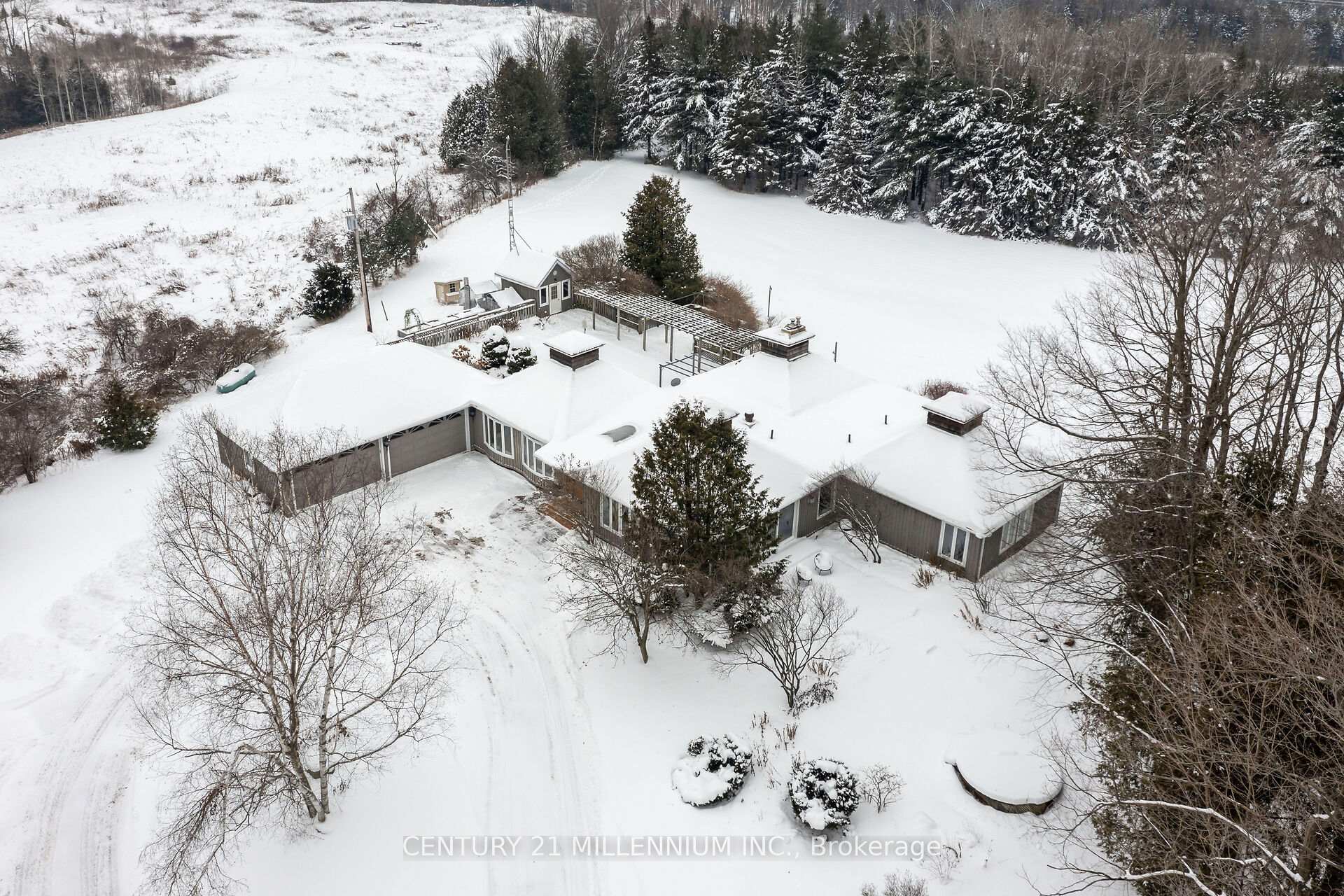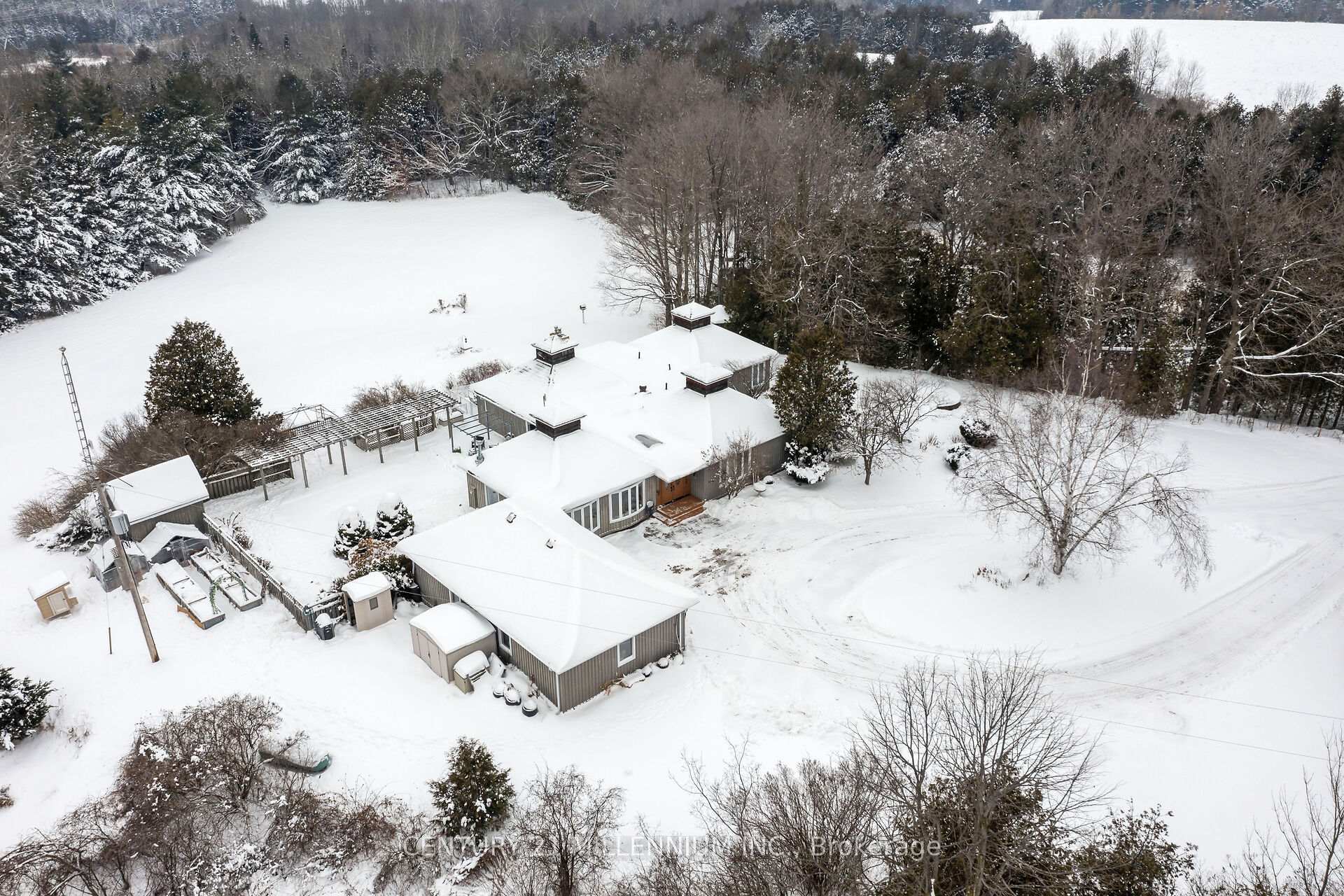 Your wait for paradise is over! This 17-acre property features two paved driveway entrances, a beautiful spring fed pond, complete privacy and an exquisite 4-bedroom, 3-bathroom home. Drive up the tree lined driveway as the stress of your day escapes you and is replaced by peaceful easy feelings. This custom build has a smart layout with stunning views from every window, and the primary suite will make you never want to leave it! The lovely kitchen is this centre of the design opening to a breakfast nook, library, and dining room, plus the bedroom wing of the home. The great room is bright and airy walking out to the inground saltwater pool and sun filled patio. The walk out lower level is home to a huge rec room, a full bathroom with a sauna, laundry and so much storage. Efficient Geothermal heating with brand new 2025 furnace with transferable warranty, five fireplaces, seven walkouts, chicken coop, veggie gardens, a sugar shack plus a small barn and acres to wander and relax. Only 35 minutes to the GTA, 8 minutes to the village of Erin and 20 minutes to Guelph. Your rural oasis is waiting for you, do not miss it!