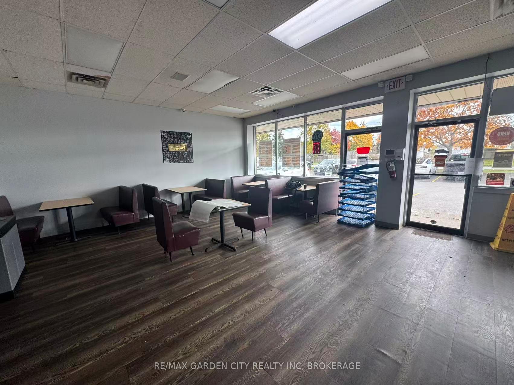 Excellent exposure in a prime North St. Catharines location! This exceptionally clean and well-maintained plaza is surrounded by amenities and several seniors' residences. Currently operating as a Shawarma restaurant, the space is fully equipped and ideal for a food-service entrepreneur or family-run business. Previously used as a butcher shop, deli, and grocery store, it offers flexibility for other culinary or retail uses. Features include a 12-foot walk-in freezer, high-efficiency furnace, HRV system, three separate entrances, high ceilings, great visibility, and ample parking at both the front and rear. A turnkey opportunity in a busy, high-traffic area. Monthly lease cost (including TMI and HST and 2 Neon Signs) is $4,668 plus utilities.