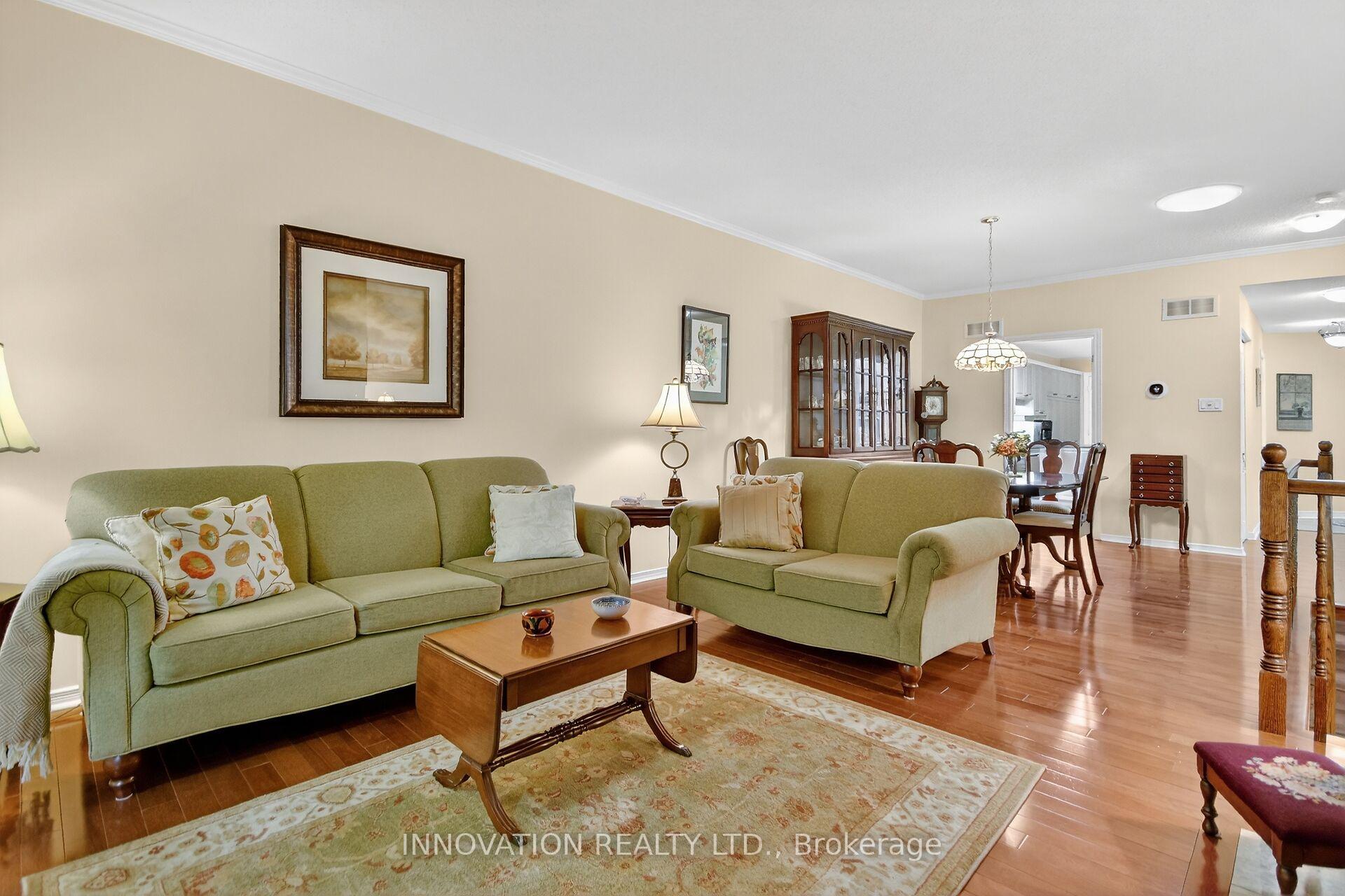 Beautiful Amberwood worry free adult living. Classic 2 bdrm, 3 baths bungalow w/attached single garage w/ inside entry. Immaculate & beautifully maintained. 1320 sq ft on main level. Large & finished Family space on lower level. Spacious foyer, large kitchen w/ plenty of cupboards, huge pantry. All appliances are to remain. Sunny Dinette w/ window. Convenient inside entry to garage. Spacious Living & Dining rm featuring cozy fireplace.Gleaming hardwood flooring in Living and Dining rms as well as Sunroom. Bright sunroom for TV watching/ reading. Elegant Primary bdrm w/ double closet space & updated ensuite bath. Large 2 nd bedroom offers great space as guest bdm or den/ home office. Adjacent 4 pc bath. Quality gleaming hardwood, neutral carpets and updated vinyl tile flooring. Bright and spacious finished lower lv offers large family space. Oversized window provides lots of light. Large 3 piece bath. Large open unfinished area with workshop table. Plenty of storage, lots of space for all kinds of hobbies. Private backyard with attractive stone patio. No rear neigbours. Snow removal, landscaping included. Close to all Stittsville wonderful amenities, walk to golf course. Park like setting with mature trees and nature at your door. 24 hrs irrevocable on all offers. All new high quality windows installed October 2024, incl basement one. Less than year old furnace and a/c. Beautifully presented and in move in condition. Must be seen. Status certificate on file.