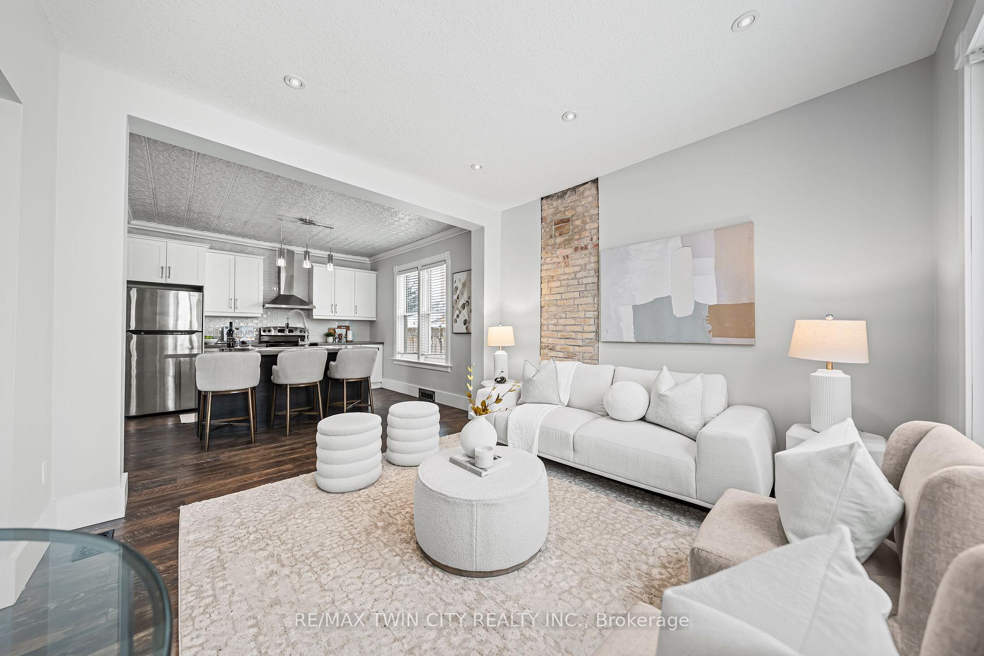 A rare opportunity in Kitchener's historic Victoria Park neighbourhood-this beautifully restored century home has been fully updated from top to bottom while preserving the charm and character the area is known for. Located in the heart of the Innovation District, this home offers modern finishes, thoughtful design, and an exceptional walkable lifestyle. The open-concept main floor features 9-foot ceilings, laminate flooring throughout, and a bright living room highlighted by an exposed brick feature wall. The updated eat-in kitchen offers quartz countertops, a large centre island, stainless steel appliances, tile backsplash, and a spacious integrated dining area, making it ideal for both everyday living and entertaining. A convenient 2-piece powder room completes the main level. The upper level includes a versatile media nook or home office area, two spacious bedrooms, and a spa-like 4-piece bathroom with a separate soaking tub, tiled glass shower enclosure, and rain shower fixture. The primary bedroom features dual closets, including a walk-in with custom built-ins and a sliding barn door. Outside, the fully fenced backyard offers a large deck and shed, providing functional outdoor space. Additional highlights include 2 parking spaces and SGA-1 zoning, offering added flexibility for future use. Unbeatable location-minutes to the Victoria Park ION LRT Station and Downtown Kitchener. Walk to Victoria Park, Google, The Tannery, University of Waterloo Health Sciences Campus, School of Pharmacy, D2L, Deloitte, restaurants, cafés, shopping, and transit. Close to Grand River Hospital, St. Mary's Hospital, and the Kitchener GO Station, with easy access to festivals, cultural events, and everything Downtown Kitchener has to offer. A rare blend of historic charm and modern living in one of Kitchener's most sought-after neighbourhoods. An excellent opportunity to live-in or invest-perfect for owner-occupiers/those seeking a well-located property in the Innovation District.