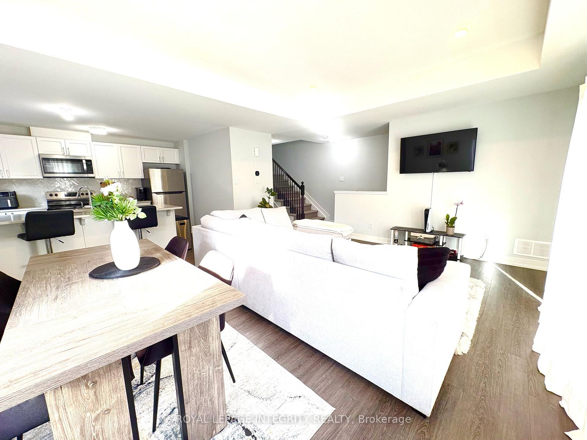 Discover modern living in this stunning 3-bedroom, 1.5-bath end-unit townhouse at 258 Anyolite Private, built in 2022. Flooded with natural light, the open-concept main floor features pot lights, sleek flooring, and a contemporary kitchen equipped with stainless steel appliances, seamlessly flowing into a bright living and dining area. This premium end unit offers superior privacy and comfort with thoughtful details like in-unit laundry, ample storage, and two private balconies perfect for relaxing. Residents will enjoy the convenience of an assigned parking spot with direct access and a prime location in the desirable Half Moon Bay community. You are just steps from parks and top-rated schools, minutes from the Minto Recreation Complex, and a short drive to the Barrhaven Town Centre, Walmart, and Costco. A perfect, low maintenance home for professionals or families seeking style and convenience. No smoking or pets.