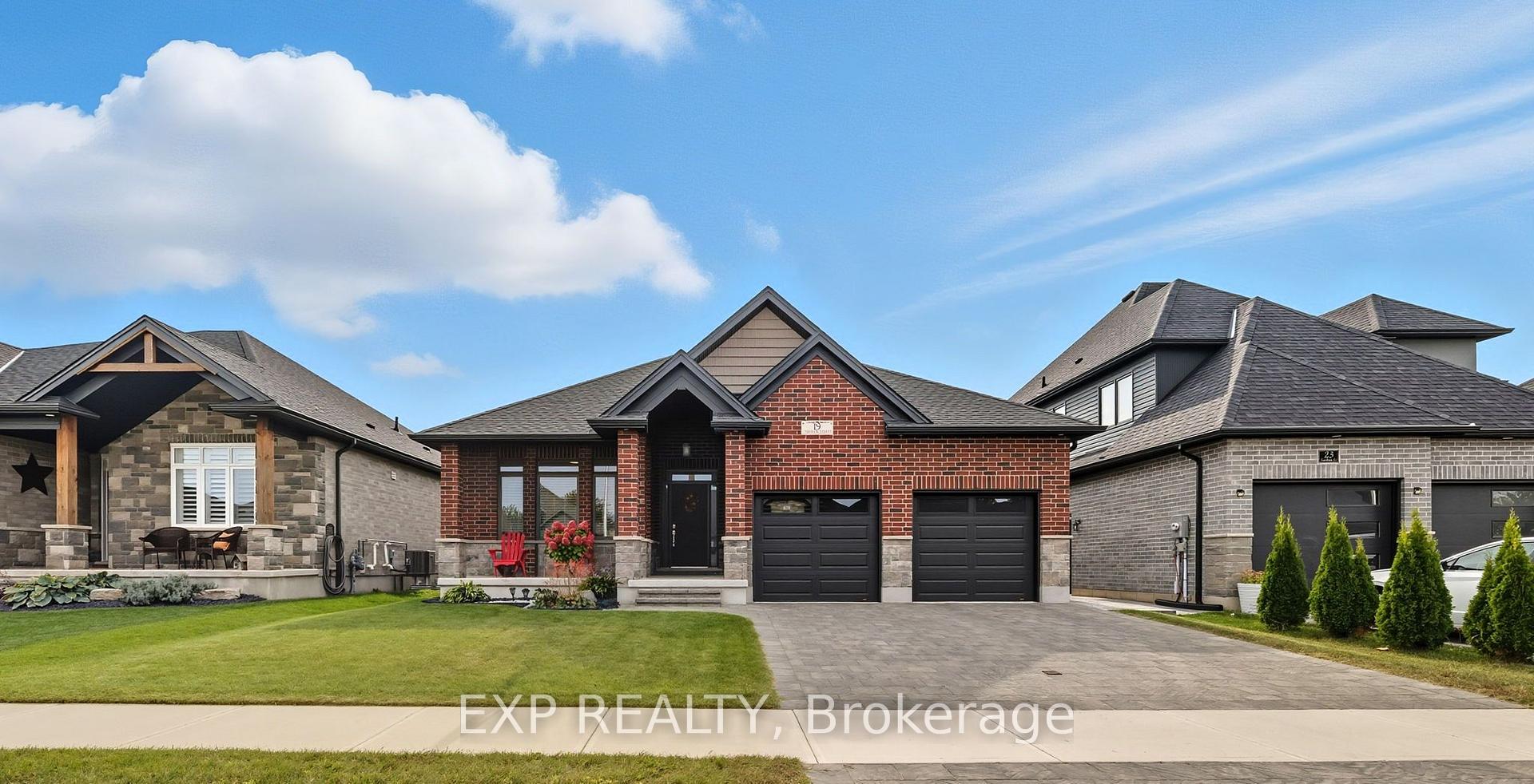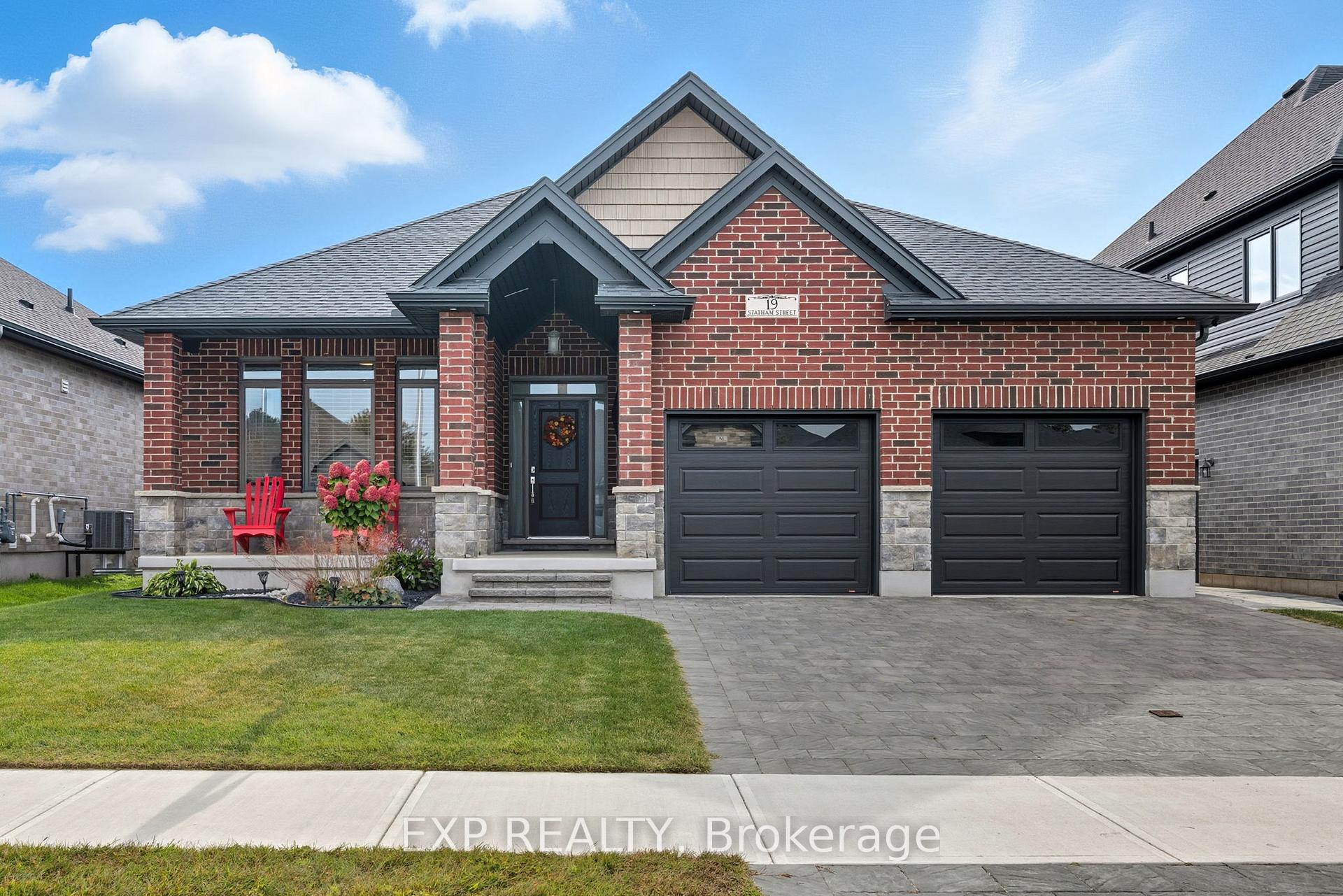 Welcome to Prestigious South Grove Meadows 19 Statham Street, a stunning Dwyer-built all-brick home tucked away on a quiet inside street with minimal traffic, just minutes from Caradoc Sands Golf Club. Sitting on a generous 130 ft lot, this 2+2 bedroom, 3 full bath property showcases thoughtful upgrades, timeless finishes, and a warm open-concept design. Step inside to find a bright, airy main floor with added windows for natural light, a cozy living room fireplace, and a gourmet kitchen featuring granite countertops, stainless steel appliances, a large island, walk-in corner pantry, and sleek black sink. The primary suite offers a walk-in closet and private ensuite, while the second main-floor bedroom is ideal for guests or a home office. The fully finished lower level includes 2 additional bedrooms (one with walk-in closet), a full bathroom with heated floors, a spacious family room with a gas fireplace, and soundproofing upgrades for ultimate comfort. Outside, enjoy a 7ft fenced backyard, stamped poured concrete patio, extended covered porch, perfect for entertaining or relaxing in your private retreat. The homes exterior is designed for low maintenance with aluminum-wrapped posts, stone skirt with brick accents, and upgraded black garage doors.Additional features include: Double car garage, central vac, CAT-6 wiring in every room, window coverings (Levolor blinds upstairs, blackout blinds downstairs), Quartz countertops in all upstairs baths, Noise insulation upgrades between levels. On demand tankless water heater. This move-in ready home is close to schools, parks, shopping, dining, and recreational facilities making it an exceptional choice for modern living in Strathroy.