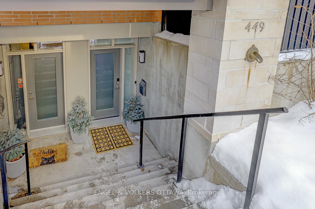Welcome to Ravenhill Common-an exclusive enclave of contemporary, brownstone-inspired townhomes designed by architect Barry Hobin, ideally located in the heart of sought-after Westboro.The current owners of 449 Edison Avenue have transformed this already sophisticated residence into a truly exceptional luxury home, completing a comprehensive, top-to-bottom renovation in December 2024. Every detail was meticulously curated, with only premium materials and expert craftsmanship selected throughout.The main entry level opens to a spacious foyer offering abundant mudroom-style storage, a convenient two-piece powder room, and a versatile flex space ideal for a home office or fitness area. Direct interior access leads to a secure heated parking space, complete with additional storage and a water line for vehicle washing.The sun-filled main living level features 9-foot high ceilings and transom windows, creating a bright and airy atmosphere ideal for both everyday living and entertaining. This level includes a welcoming living room with access to a deck overlooking the quiet neighbourhood, an open dining area perfect for family gatherings, and a stunning custom kitchen. The kitchen is equipped with Fisher & Paykel appliances, a breakfast island ideal for morning coffee, and access to the rear terrace-perfect for alfresco dining.The second level offers a generous second bedroom, a full laundry room, and a family room that can be used as a third bedroom if desired. The third level with 9-foot high ceilings is devoted entirely to the primary retreat, featuring a custom walk-in closet, access to a private terrace, and a beautifully appointed five-piece ensuite-a true spa-like sanctuary.With no grass to cut and no snow to shovel, as maintenance is covered under common area fees, this home offers the ultimate lock-and-leave, maintenance-free lifestyle. For full details, see attached feature sheet. 24-hour irrevocable on all offers as per form 244.